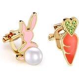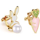 🐇 أقراط بمشبك عيد الفصح: أرنب لطيف من المينا الأبيض مع ذيل لؤلؤي وجزرة مع كريستالات زركونيا مكعبة باللون الأخضر اللامع!