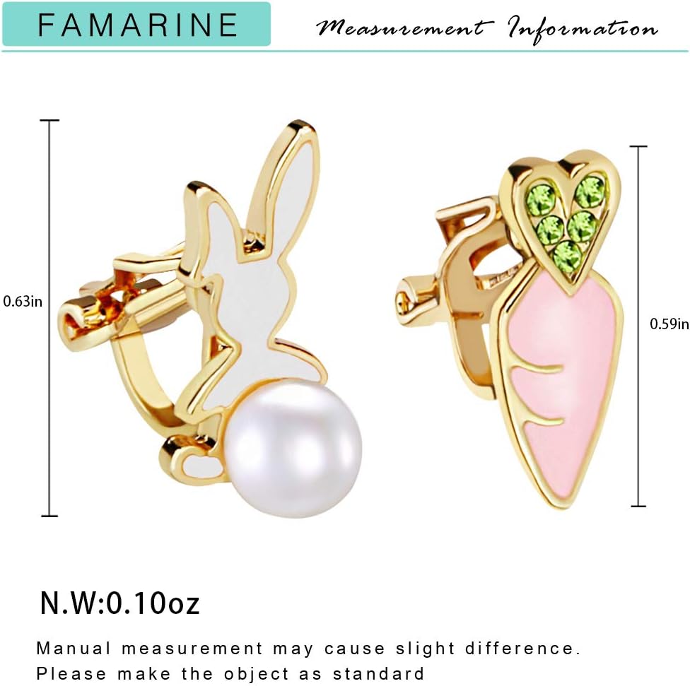 🐇 أقراط أرنب أرنب: طول أقراط الفاكهة: 0.59 بوصة/ 0.63 بوصة، الوزن 0.07 أونصة. أقراط بمشبك لا تسبب الحساسية مثالية للأذن الحساسة، ولا تسبب ضررًا لبشرتك.
