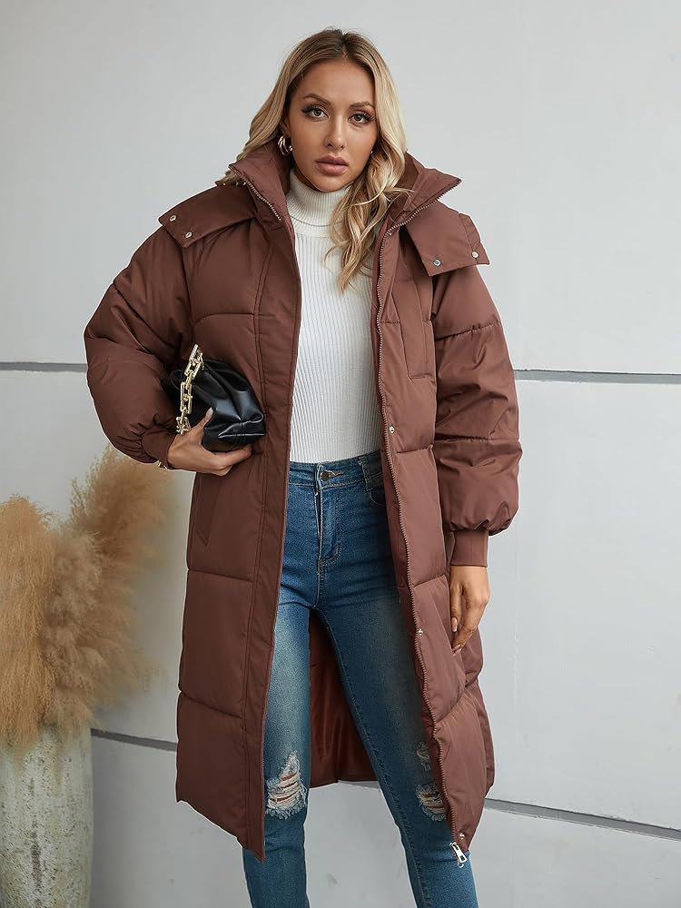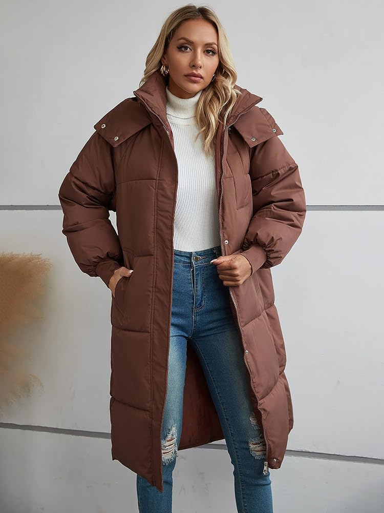 تصميم فريد: سترة بغطاء للرأس، سحاب كامل، أكمام طويلة، أساور مرنة، زر، طول طويل، مقاس كاجوال، جيبان جانبيان. لا يظهر المعطف طولك ونحافتك فحسب، بل إنه بسيط وأنيق أيضًا.