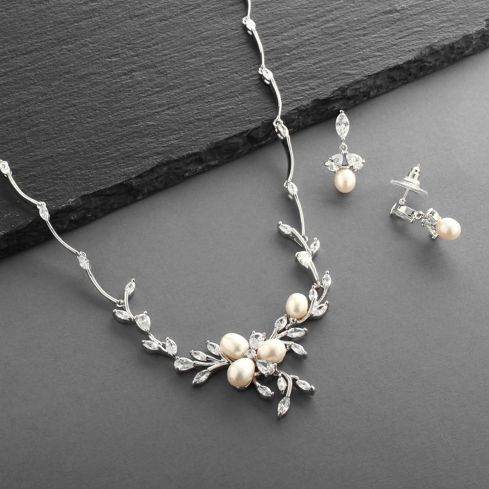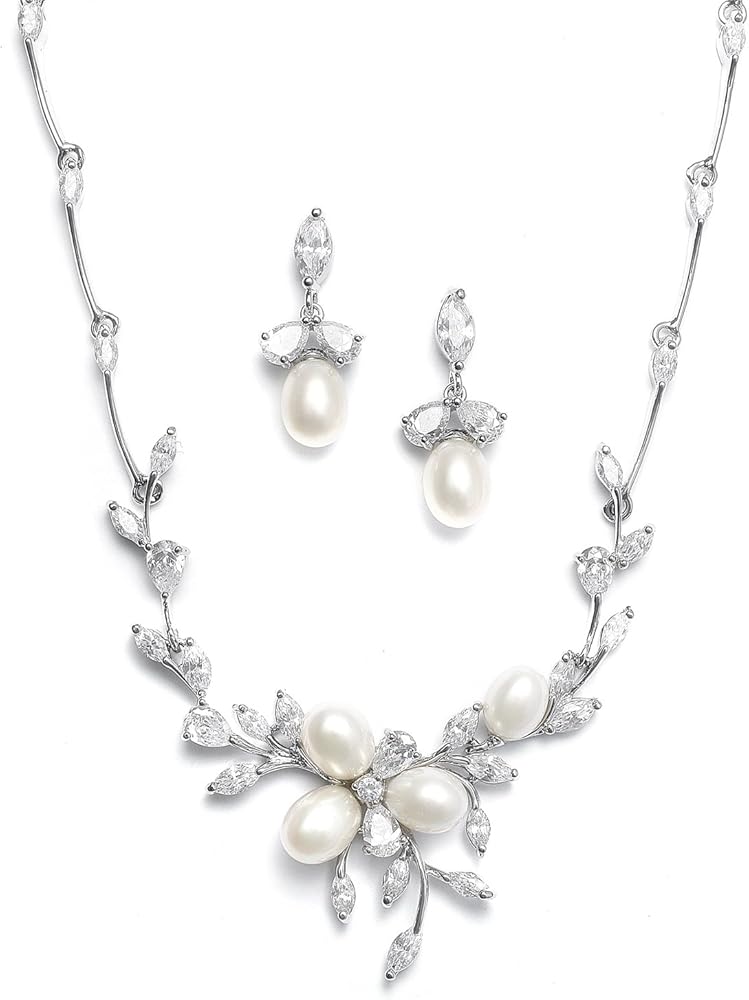 تصف الأناقة المطلقة مجموعة العقد والأقراط هذه التي تتميز بلآلئ المياه العذبة الأصلية اللامعة وأوراق الزركونيا المكعبة الرائعة. يبلغ قياس قلادة الروديوم الفضية 17 1/2 بوصة 1 1/4 بوصة في المنتصف والأقراط المتدلية المطابقة بارتفاع 1 بوصة. أكملي مجموعتك الفاخرة بأسلوب ماريل Designs 3041B، الذي يباع بشكل منفصل. مصنوعة بدقة من زركونيا مكعب ايه وروديوم فضي أصلي مطلي بالبلاتين، ستحصل على المظهر المميز للمجوهرات الفاخرة بجزء بسيط من السعر.