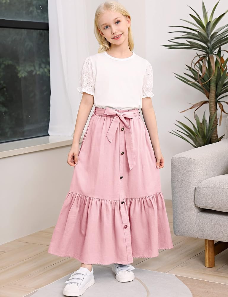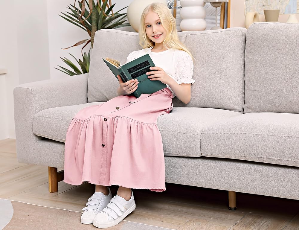 🎈المميزات: تنورة متوسطة الطول كاجوال للعطلات الصيفية للفتيات، تفاصيل مكشكشة، طول الركبة، مقاس فضفاض. يتيح لك التصميم المتأرجح على شكل حرف A ضبط حزام الخصر ليناسب مقاسك. فساتين الشاطئ للفتيات، يحصل الأطفال على الكثير من الإطراء في كل مرة يرتدونها.
