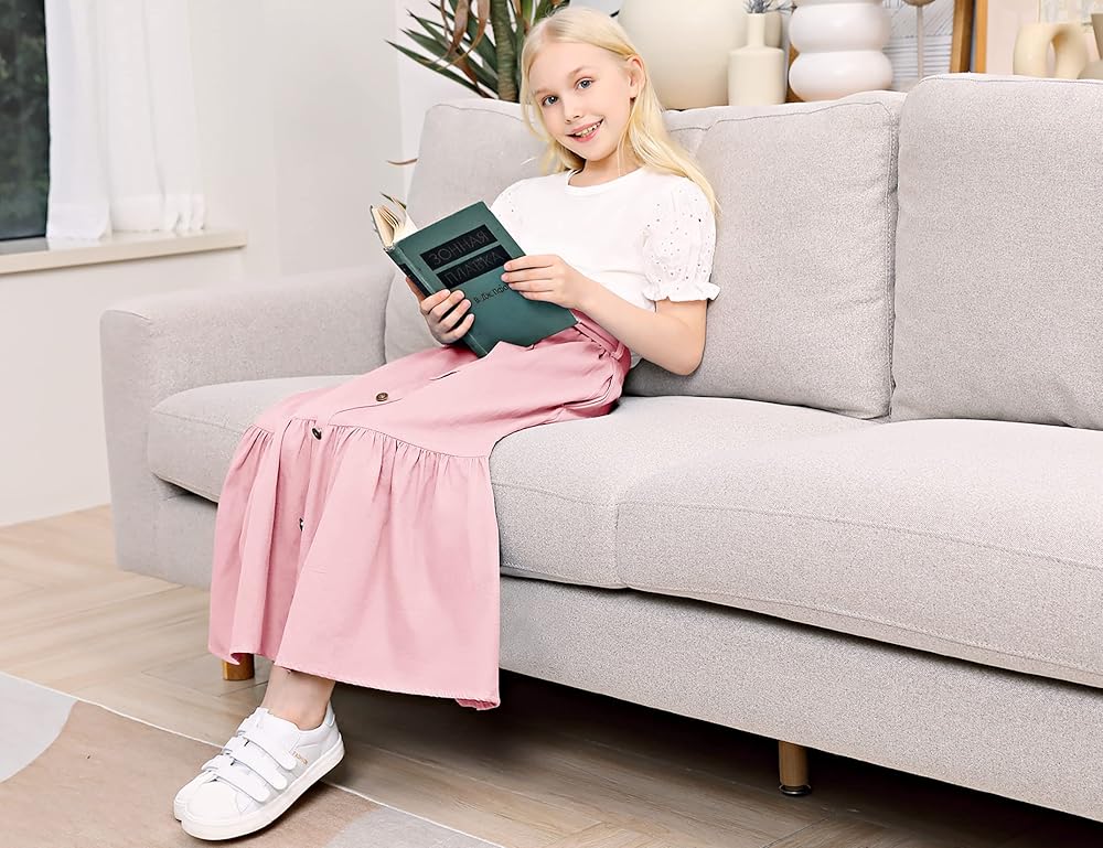 🎈الخامة: 100% بوليستر. تنورة عالية الخصر للفتيات مصنوعة من قماش عالي الجودة قابل للتمدد بدون حشو؛ مادة ناعمة وجيدة التهوية وصديقة للبشرة مع خياطة متينة لتجعلك تشعر بالارتياح.