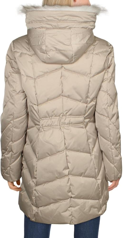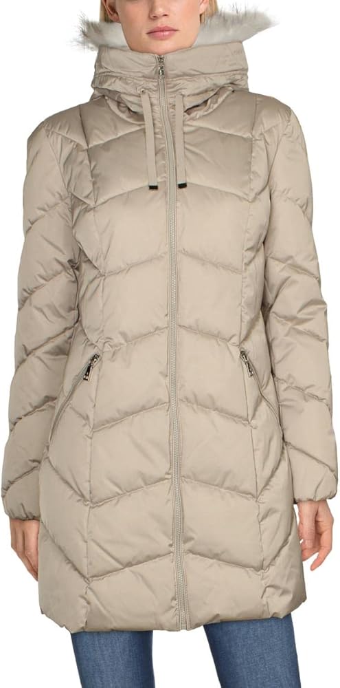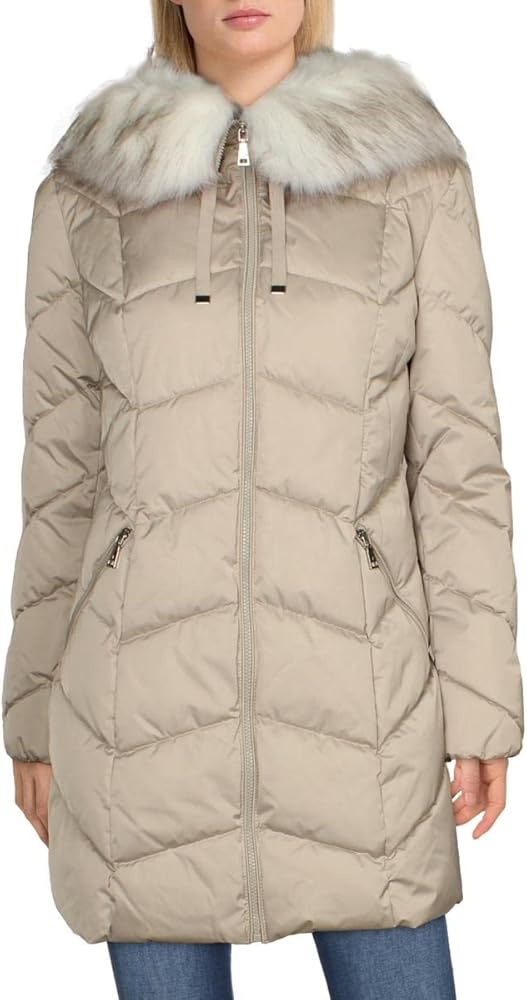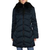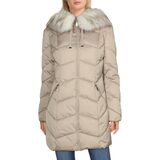 JACKET: This jacket is a must have! Fashioned with 100% polyester, a removeable faux fur strip, and a chevron quilting pattern. Detach fur strip before washing.