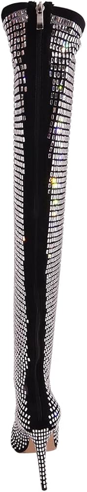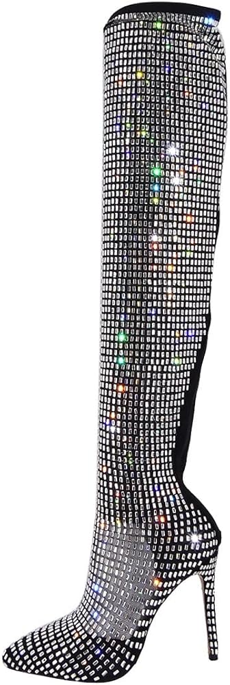 ❤تصميم مثالي: تم تصميم هذه الأحذية الطويلة فوق الركبة بمقدمة مدببة مثيرة وكعب عالٍ ستيليتو وتصميم من حجر الراين اللامع. مع السحاب الخلفي، يمكنك ارتداؤه وخلعه دون عناء.