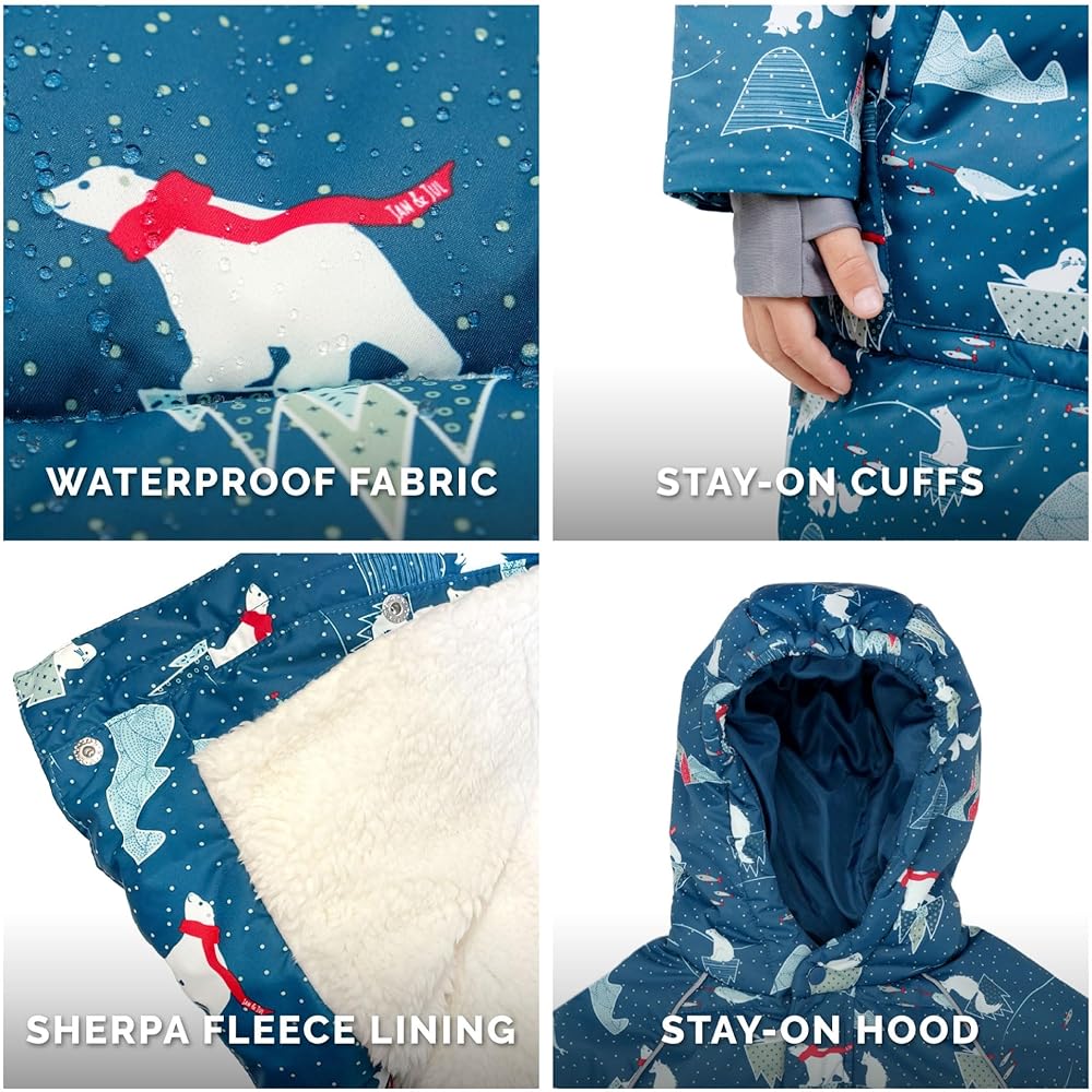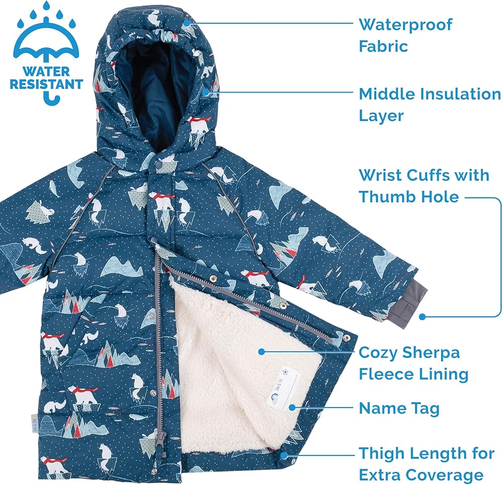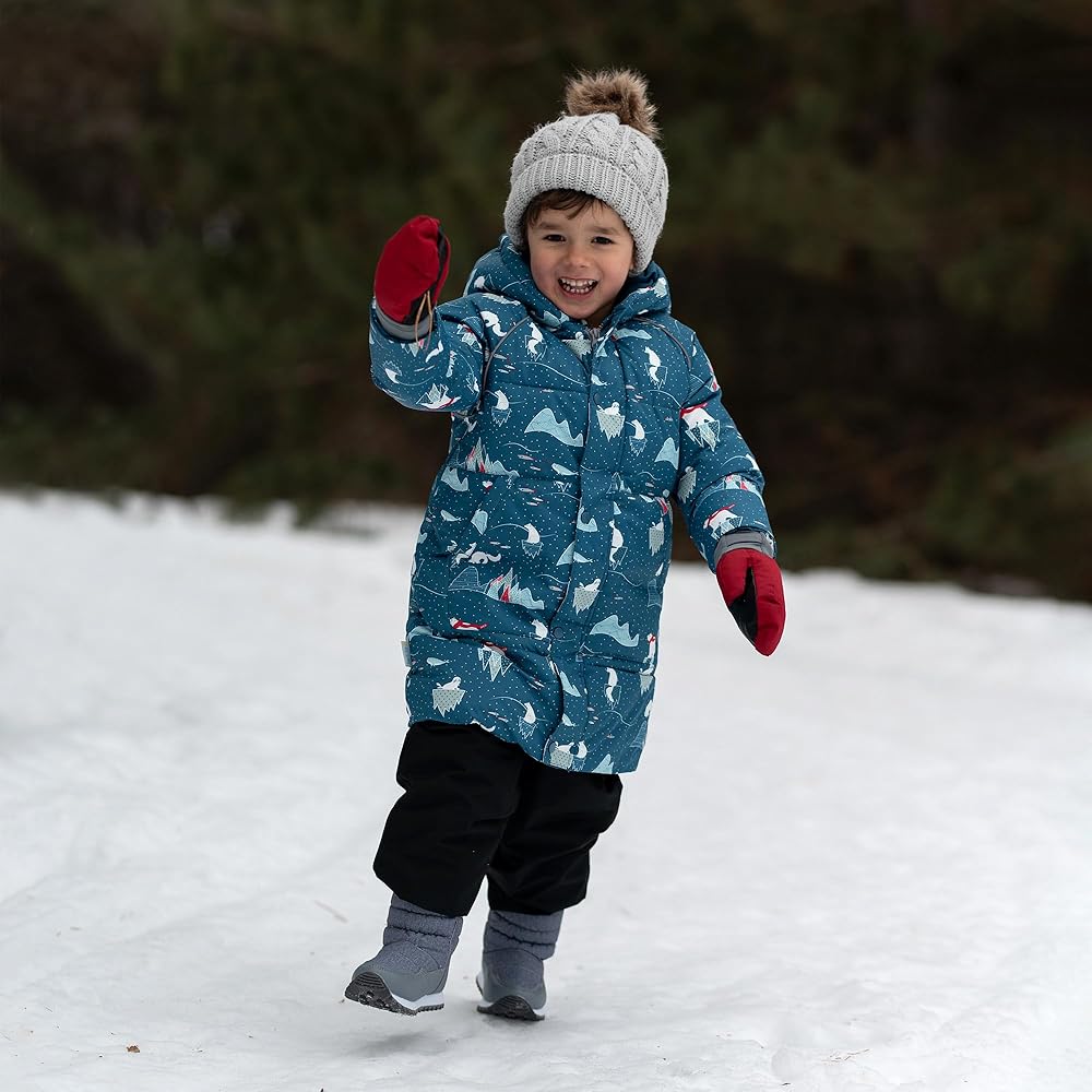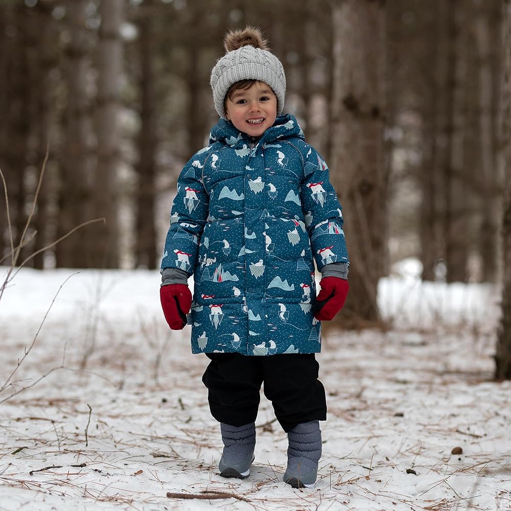 بطانة الشيربا: معطفنا المنتفخ المقاوم للماء للأطفال الصغار مبطن بصوف الشيربا الفخم للحفاظ على دفء طفلك أثناء اللعب. مصمم ببطانة رفيعة على الذراعين لسهولة الارتداء.