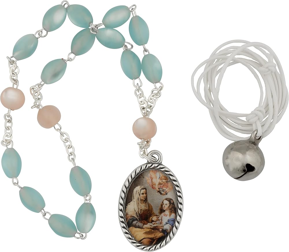 مجموعة الصلاة المتفانلة من سانت آن | خرز زجاجي أزرق على شكل بيضة روبن | يتضمن التعليمات والمعلومات | هدية كاثوليكية رائعة للتواصل الأول والتأكيد | صنع في إيطاليا