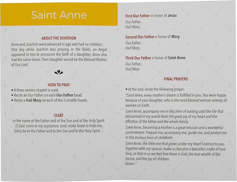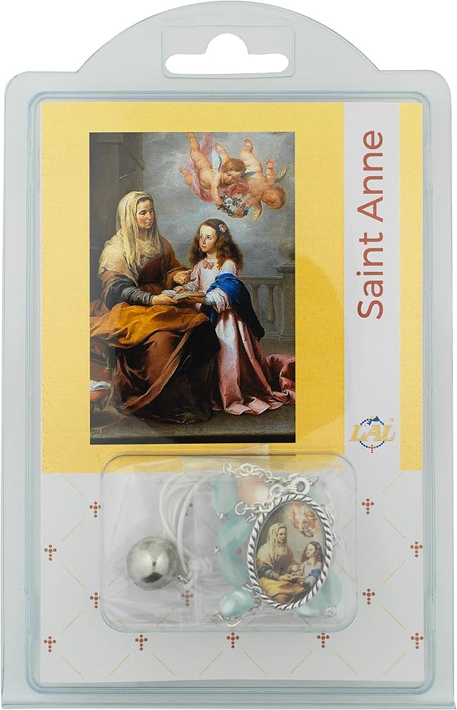 آن وجواتشيم تطوران في العمر ولا يوجد بها أطفال. في أحد الأيام بينما كان جواكيم يصلي في الحقوق، بدا له ملاك يعلن عن ولادة ابنة؛ آن لديها نفس الرؤية. ستكون ابنتهم الأم المباركة. 26 يوليو هو عيد آن وجواتشيم. هذا هو تفاني شائع للأمهات لأن سانت آن هي حامي الأمهات. امنح هذه المجموعة الجميلة لنفسك أو لأحبائك في أي مناسبة أو عطلة خاصة، مثل العام الدراسي الجديد، أو المناولة الأولى، أو التأكيد، أو التقديم، أو الزفاف، أو الحصول على ما يرام، أو استكمال RCIA، أو عيد الأم، أو عيد الأب، أو المنزل الجديد، أو عيد الفصح، أو أعياد الميلاد، أو الكريسماس!