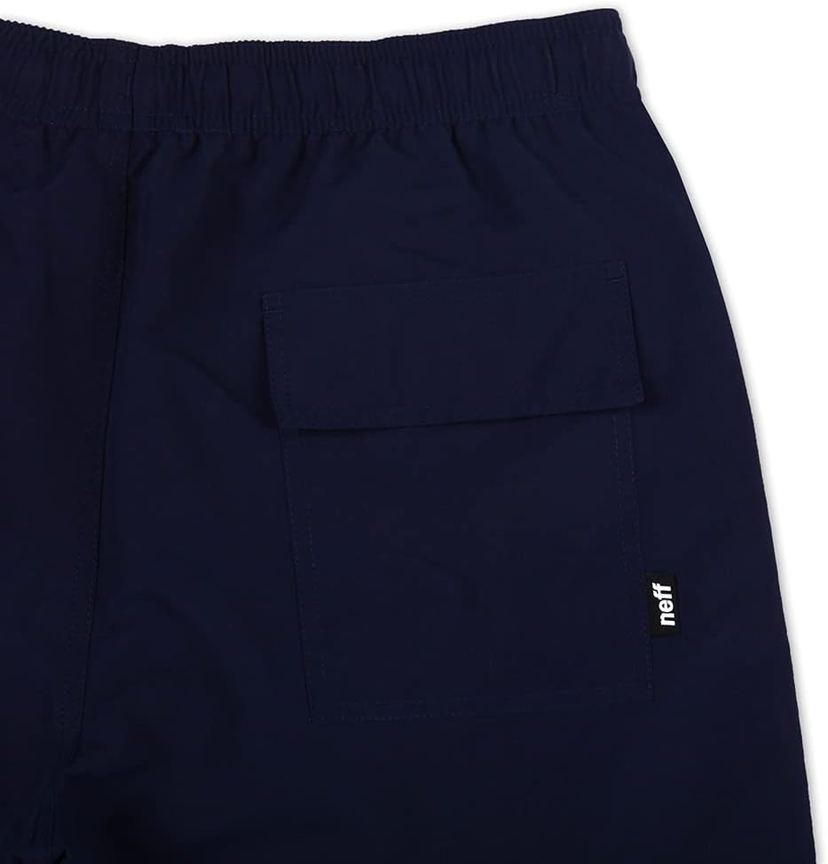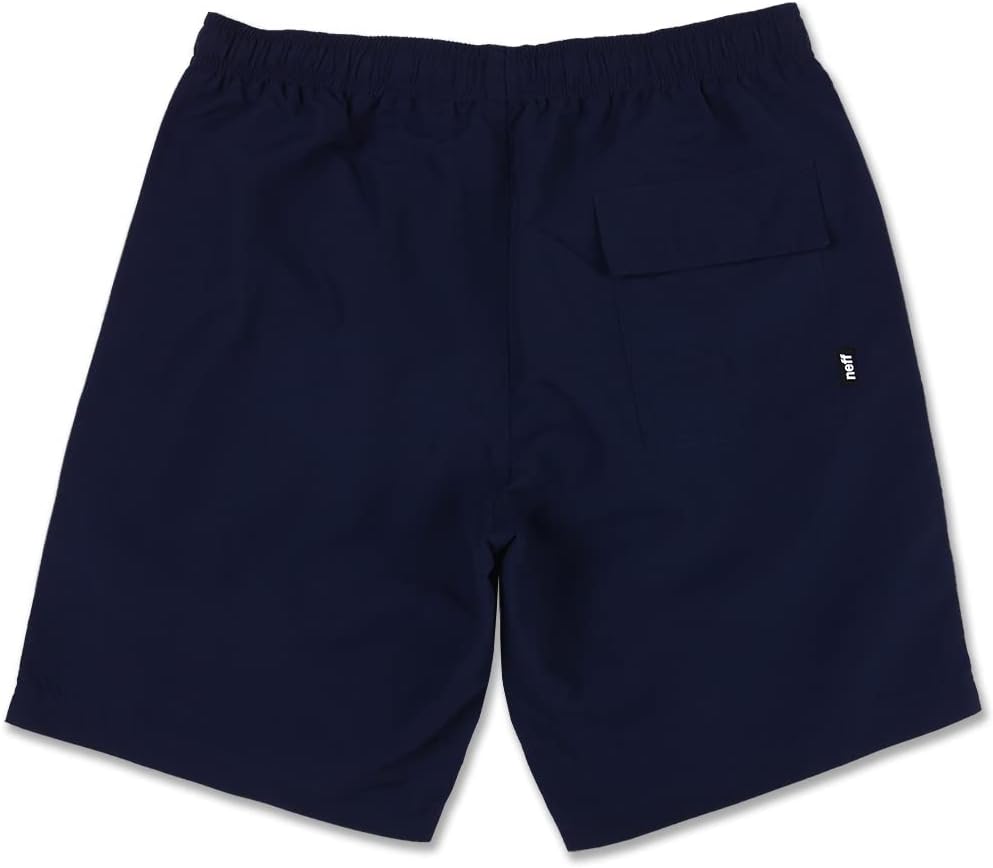 Featuring a 9" inseam, mesh lining, elastic waistband with drawstring, neff logo patch, side seam pockets, and single rear pocket with hook and loop closure