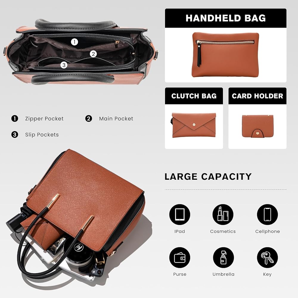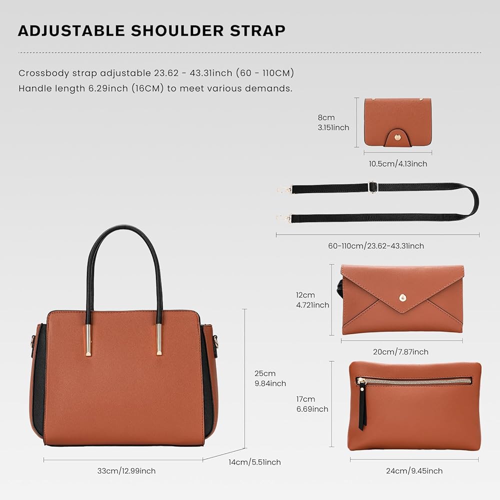 【استخدام واسع】تتضمن مجموعة حقائب اليد المكونة من 4 قطع حقيبة يد رئيسية، بالإضافة إلى حقيبة كروس وحقيبة يد وحامل بطاقات لتلبية احتياجاتك المتنوعة. يسمح تصميم حزام الكتف القابل للتعديل بتحويل حقيبة اليد بسهولة إلى حقيبة كتف أو حقيبة كروس، وهي مناسبة لمشاهد الحياة المختلفة واحتياجات الأناقة.