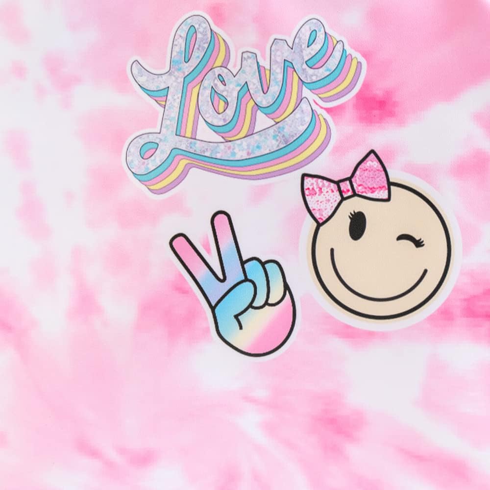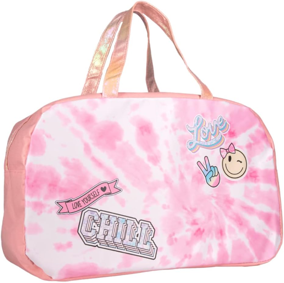 حقيبة رقص رائعة - تحتوي على مقابض قزحية لامعة طويلة بما يكفي لارتدائها على الكتف في الطريق من وإلى التدريب، ووجه مبتسم، وعلامة سلام، ورسالة إيجابية "تحب نفسك"