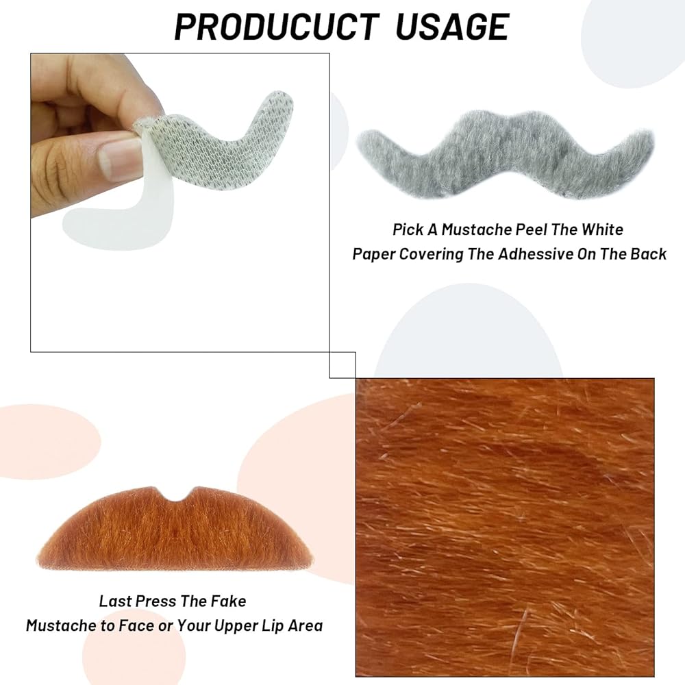 ⭐️【شارب ذاتي اللصق】: الشوارب المزيفة سهلة الاستخدام، فقط قم بتقشير الورقة الخلفية، ثم لصقها تحت الأنف، متنكرة في شكل لحية حقيقية. كما أنه من السهل الإقلاع.