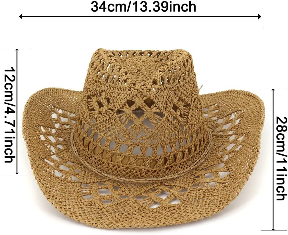 المقاس--محيط قبعة رعاة البقر النسائية هذه حوالي 22 بوصة/57 سم، مناسبة لحجم الرأس أقل من 22 بوصة، مقاس واحد يناسب معظم النساء والفتيات والسيدات، الارتفاع 4.7 بوصة. عرض الحافة 3 بوصات، يرجى التحقق من المقاس بعناية قبل الطلب