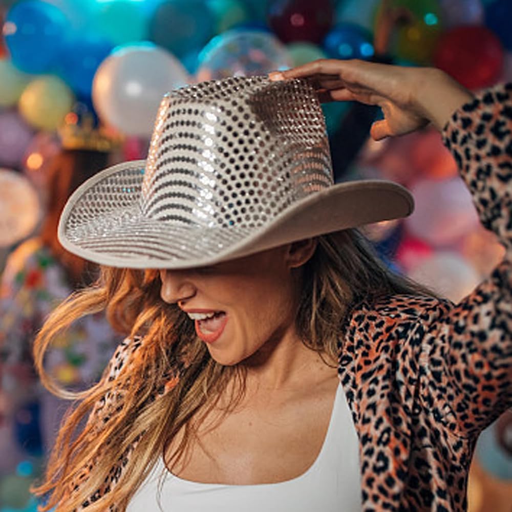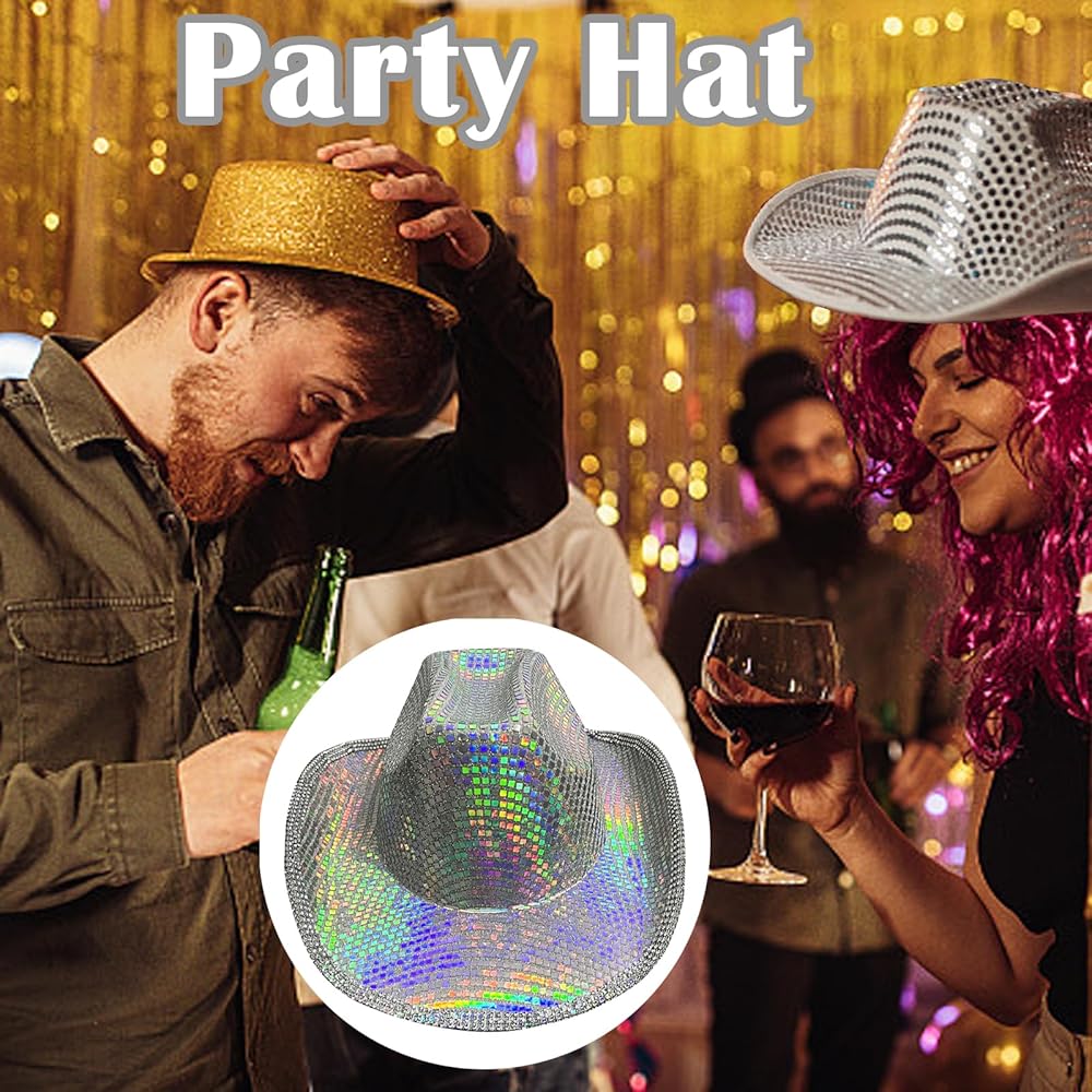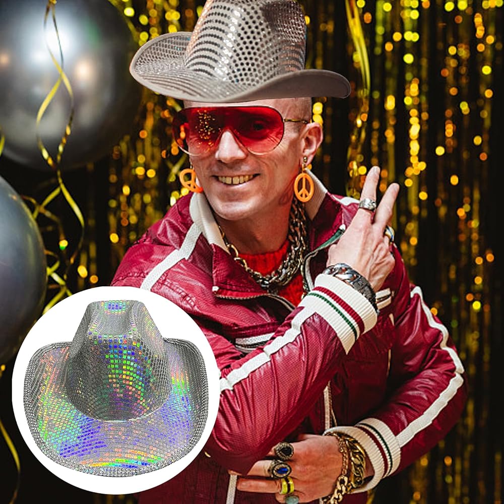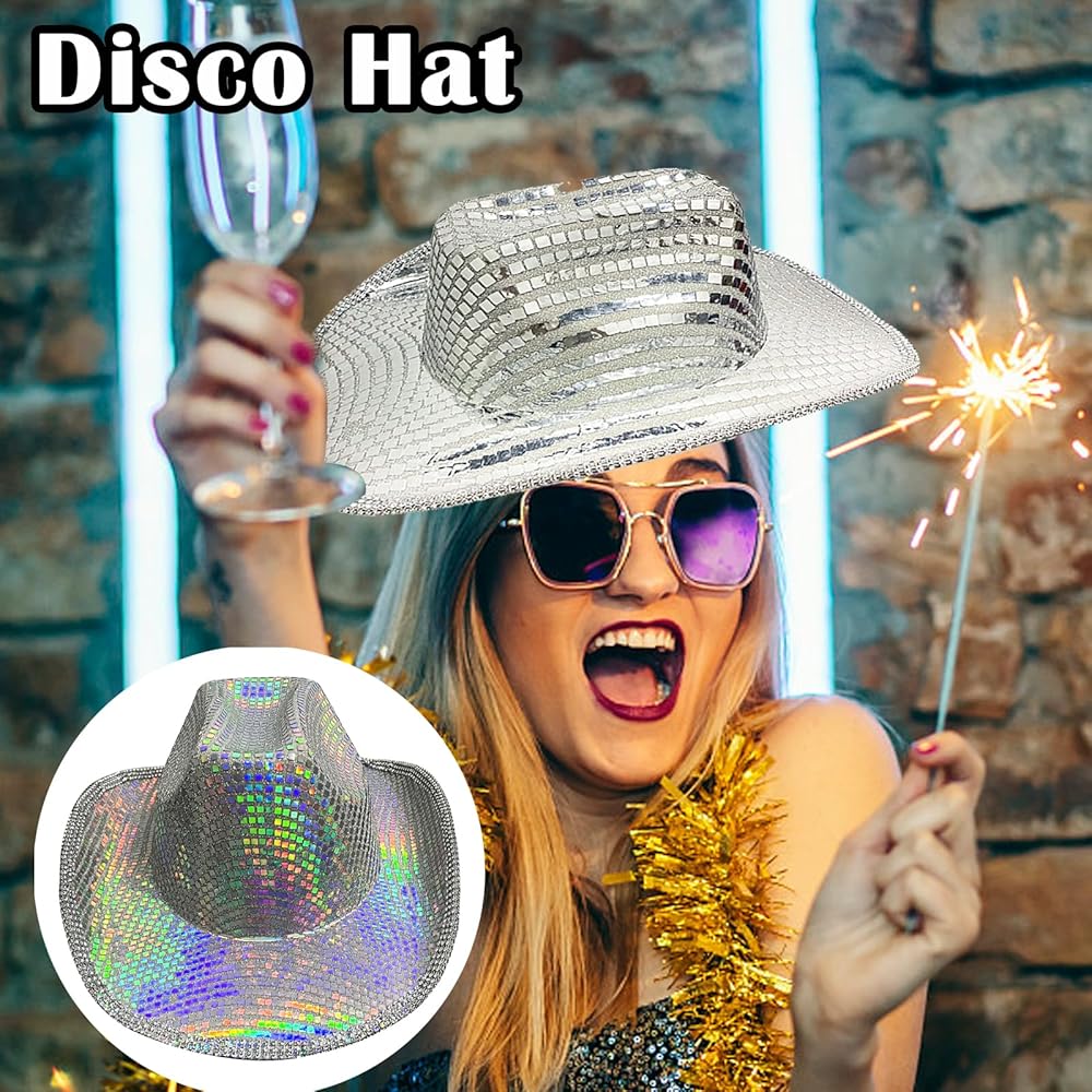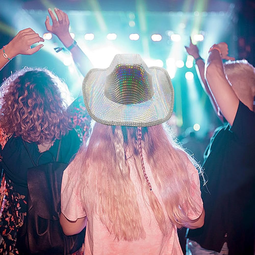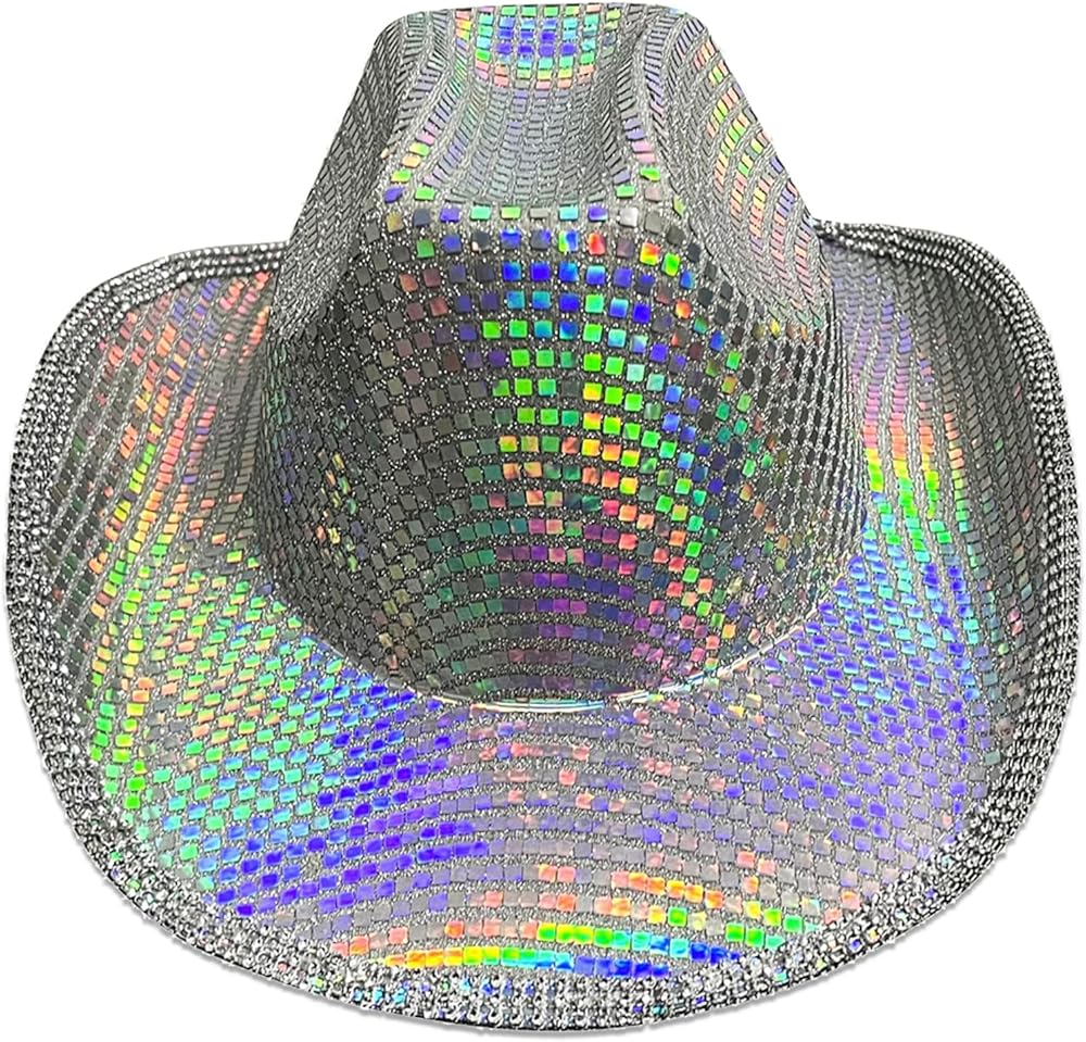 Sequin Cowboy Hat: The disco ball hat has sparkly colorful sequins on it, the surface surface can be shiny under the sun or light. the glitter cowboy hat is easy to match any disco cowgirl outfits or cowboy outfits for women, can make you more stand out from the crowd.