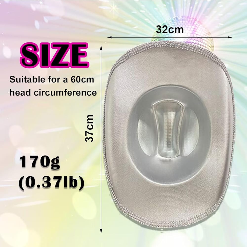 One Size Fit All: This sparkly cowboy hat meature approx. 37 x 27 x 12cm/ 14.6 x 10.6 x 4.7inch, standard size fit for most women, men, adults and teens, the disco hat can add sparkle and shine for your disco cowgirl bachelorette party.