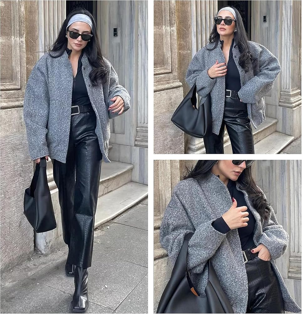 سترات منفوخة من مزيج الصوف لخريف وشتاء 2023، ملابس خارجية رياضية غير رسمية، سترة اسكواش خفيفة الوزن، معطف y2k ملابس الشارع، سترات بأزرار سفلية، معطف سترة كبير الحجم للنساء، ملابس عصرية فضفاضة، يجب أن تحتوي على سترات لخزائن ملابسك