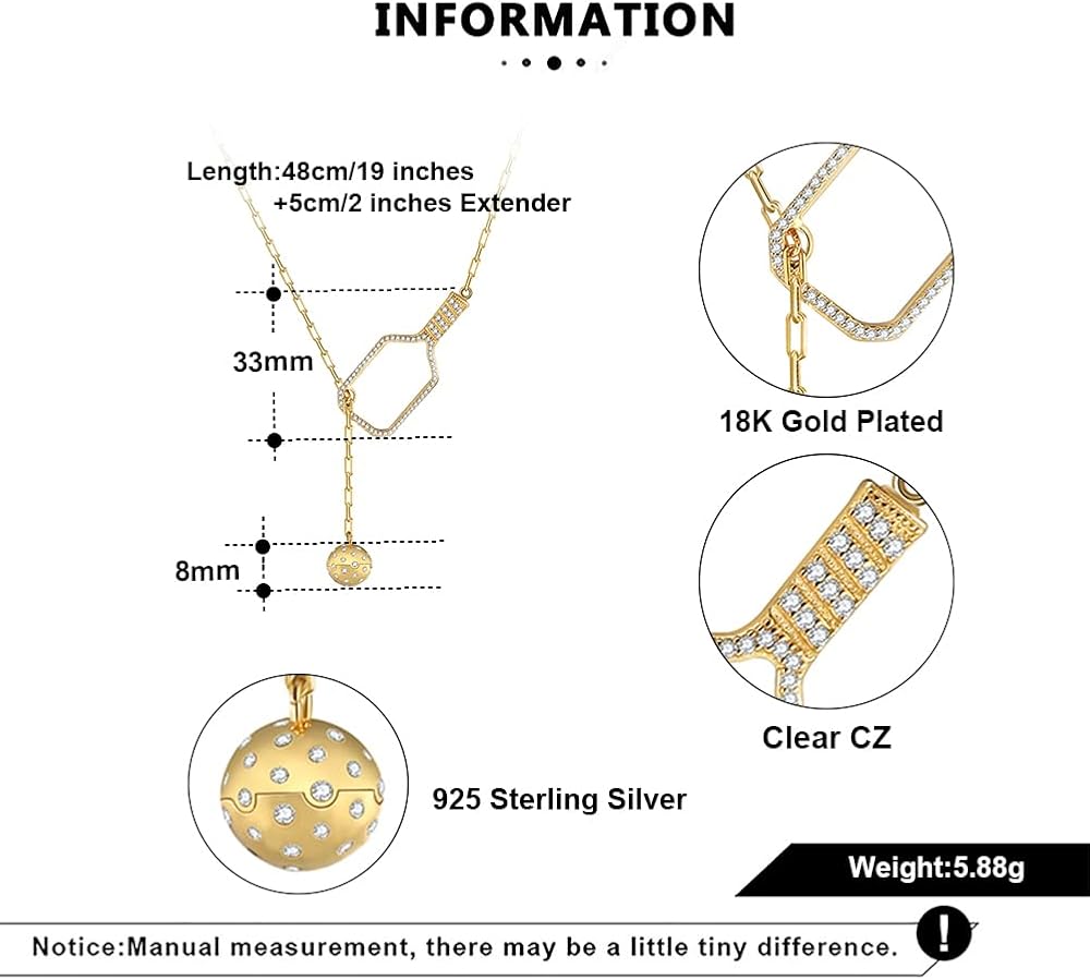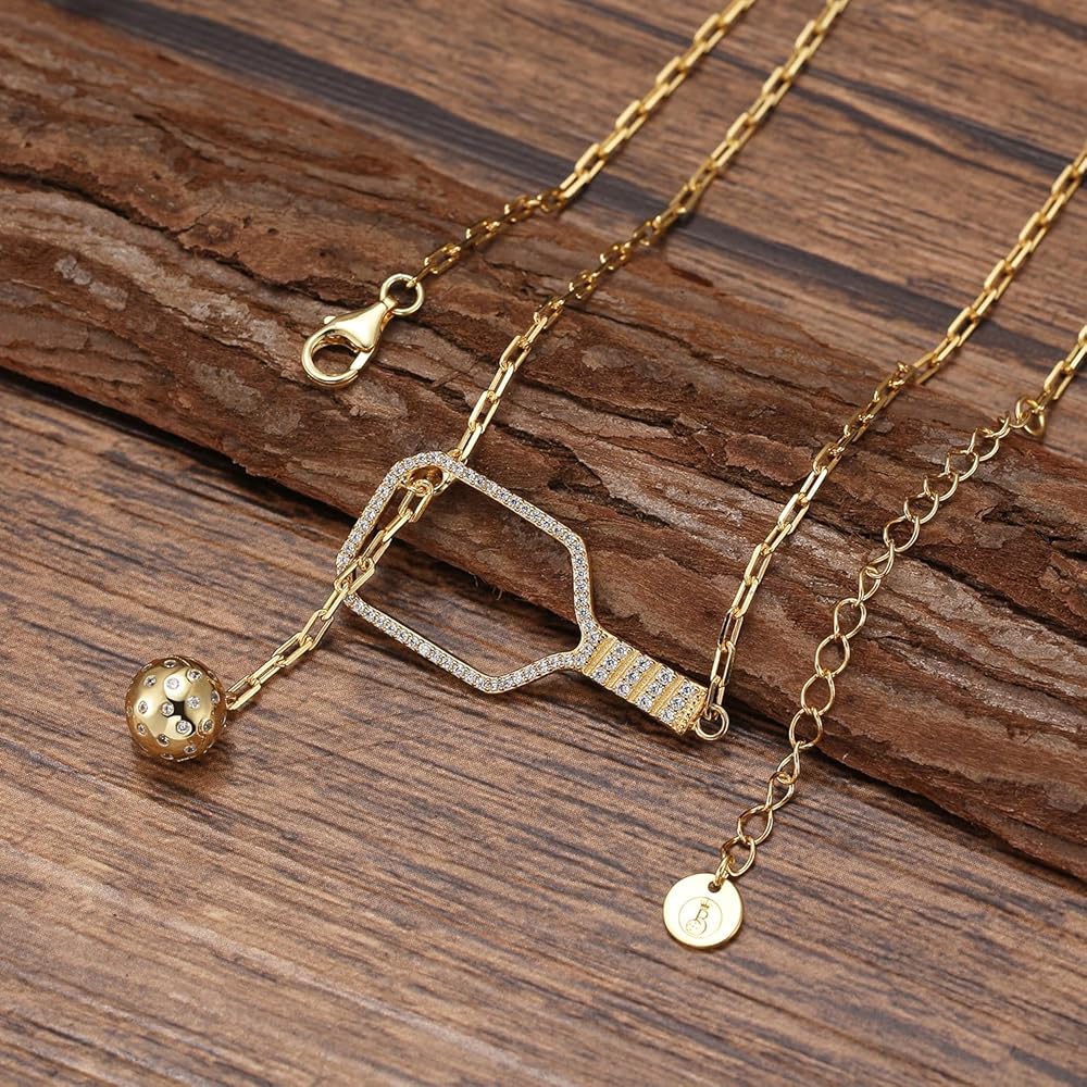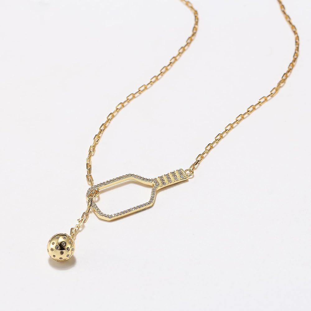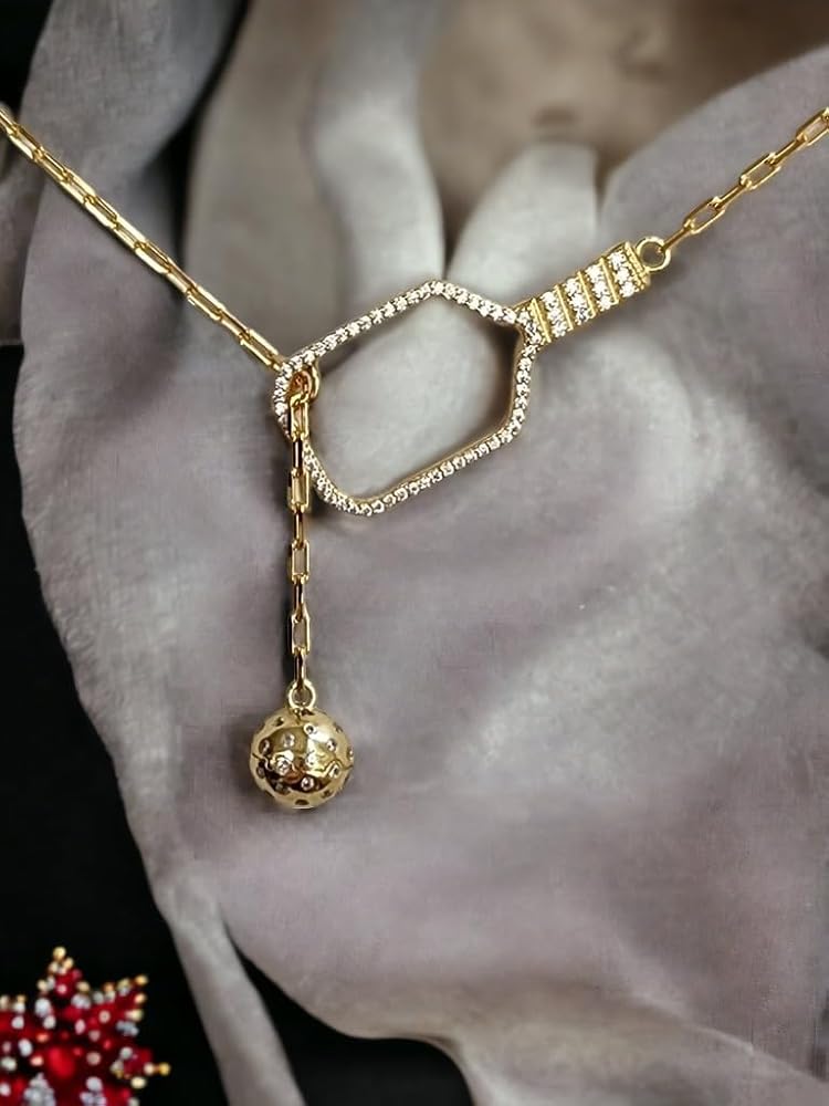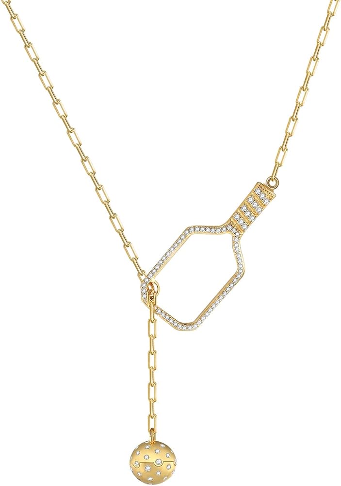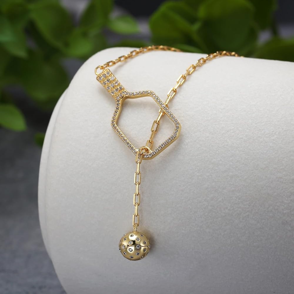 قلادة Pickleball Lariat Paddle - قلادة Pickleball من الذهب عيار 18 قيراط للنساء، مجوهرات Pickleball، هدية عيد الميلاد لمحبي Pickleball