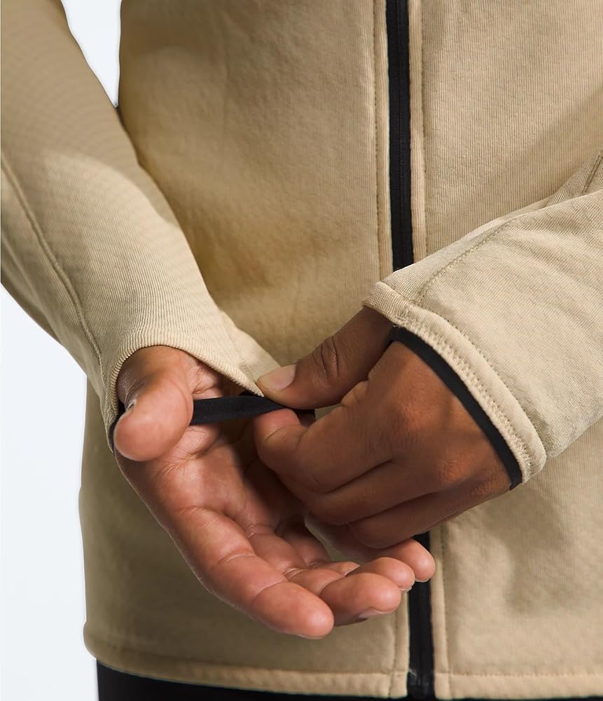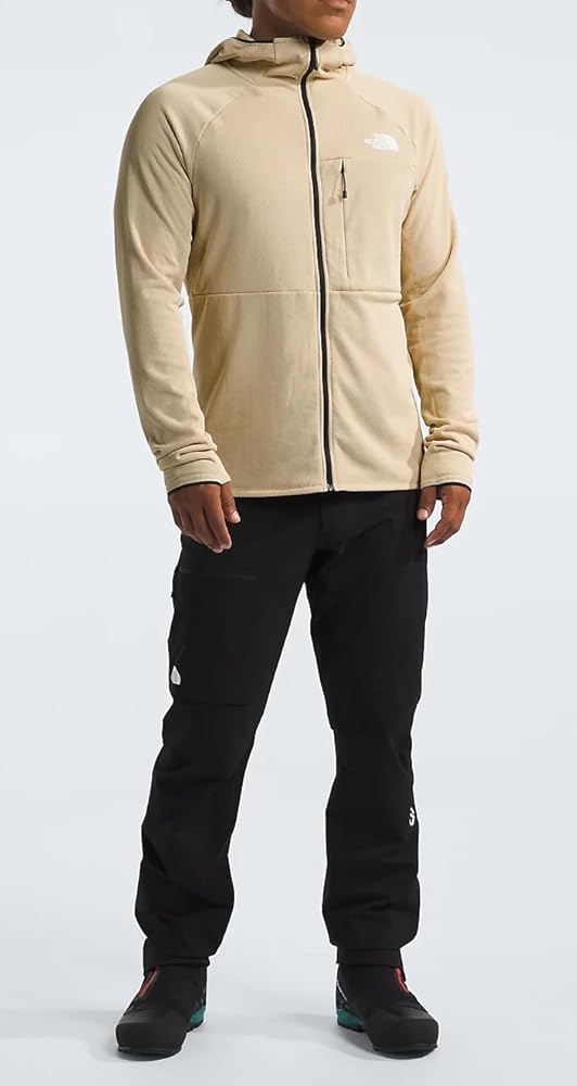 Slim fit FUTUREFLEECE offers an excellent warmth-to-weight ratio and soft hand feel Attached hood with a pre-tensioned elastic opening for a secure fit Reverse-coil, #3 center front zip No shoulder seams for reduced bulk and for comfort while you're wearing a pack Raglan sleeves and stretch underarm gussets for mobility Concealed-zip chest pocket with an internal mesh pocket Flat-locked stitching in key zones for next-to-skin comfort Flat-sewn elastic cuffs with integrated thumb loops Clean-finish front hem with flat-sewn elastic on back Style: NF0A5J7S 124 g/m² FUTUREFLEECE—55% polyester, 45% recycled polyester Avg Weight: 208 g (7.34 oz) Center Back: 27.25'' Fabric: 124 g/m² FUTUREFLEECE—55% polyester, 45% recycled polyester