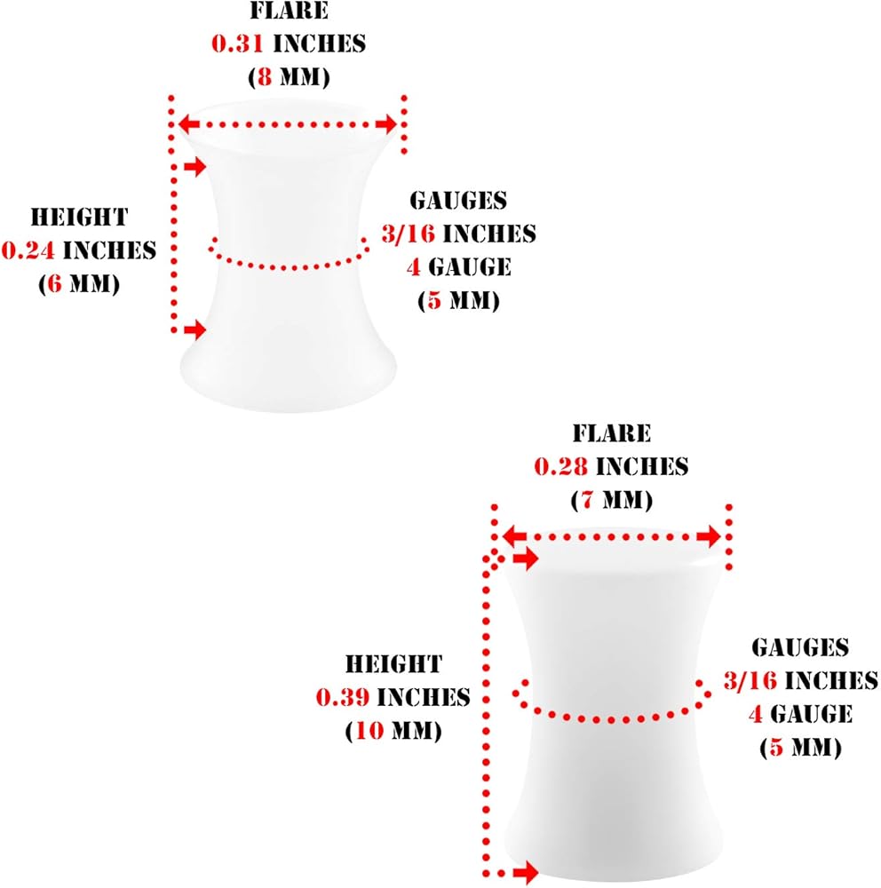 • YOU RECEIVE A pair of 4g 3/16" 5mm White Silicone Double Flare Tunnels . A pair of 4g 3/16" 5mm White Acrylic Double Flare Gauges .