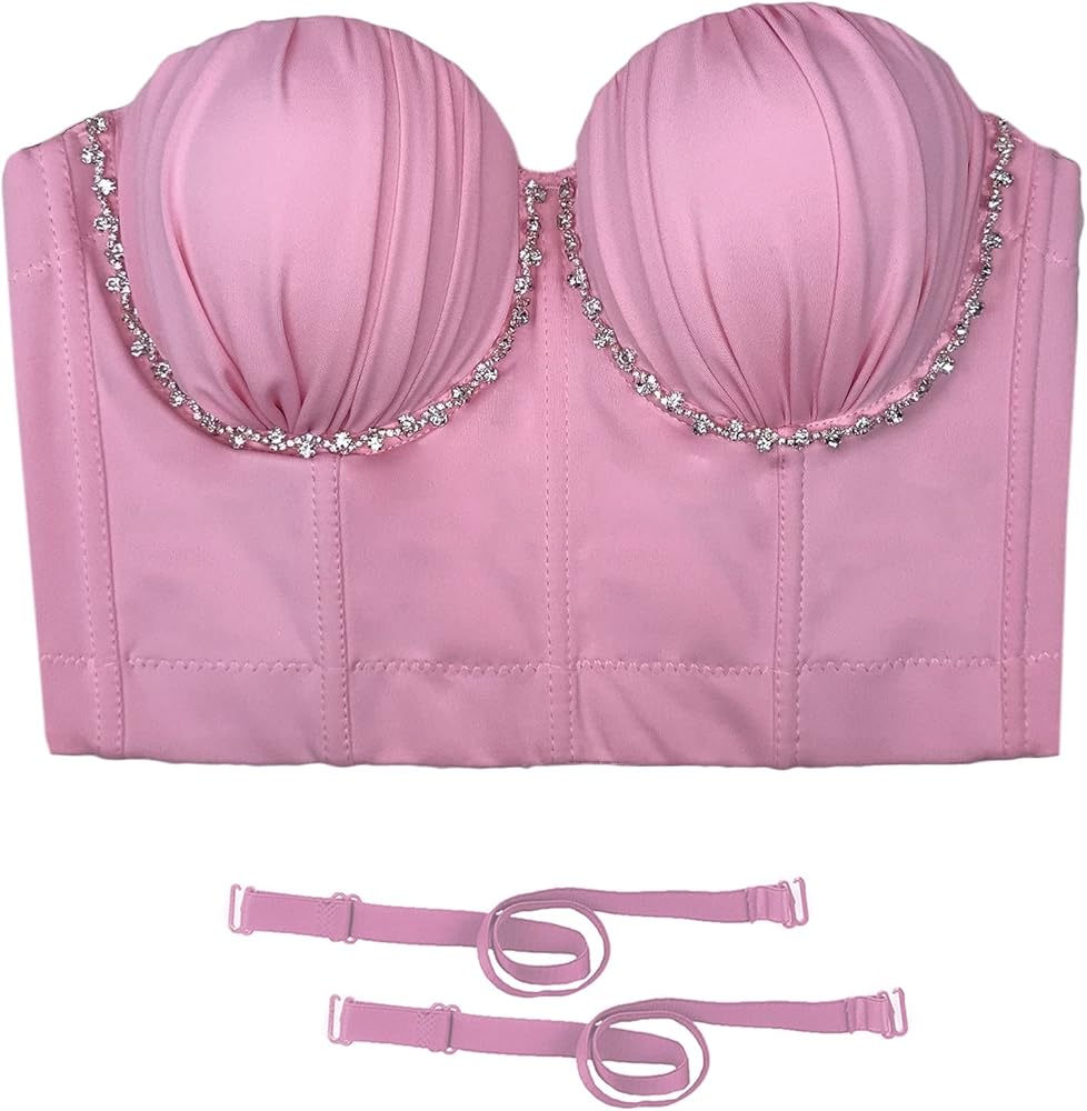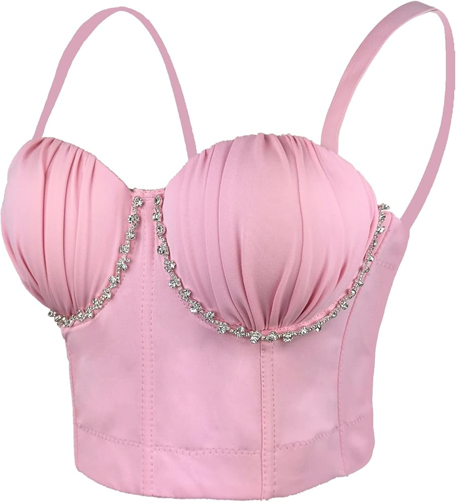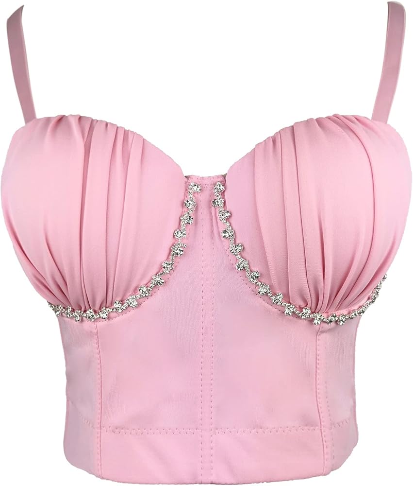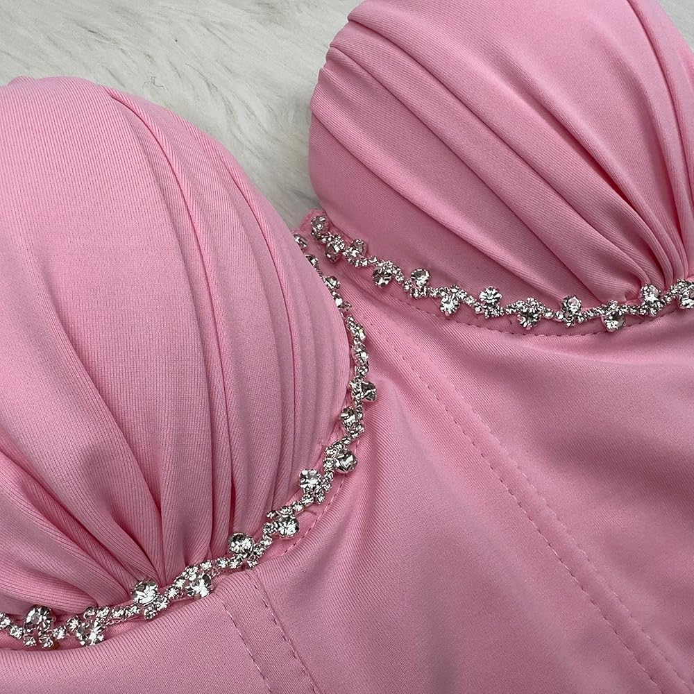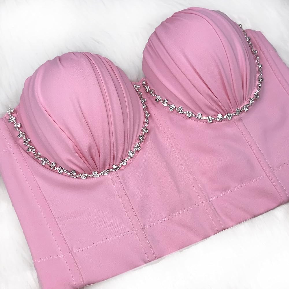 This pleated bustier with diamond chain decoration is the perfect statement piece for any occasion. The fashionable design accentuates your curves while the inlaid diamond chain adds an elegant touch to your outfit. The snug fit highlights your beautiful silhouette, and each diamond is carefully selected and expertly hand-crafted to ensure the finest quality. Whether you're attending a formal event or just going about your daily routine, this bustier is a must-have item for showcasing your unique style and charm. So why settle for ordinary when you can stand out with this extraordinary bustier? Order now and elevate your wardrobe to the next level!