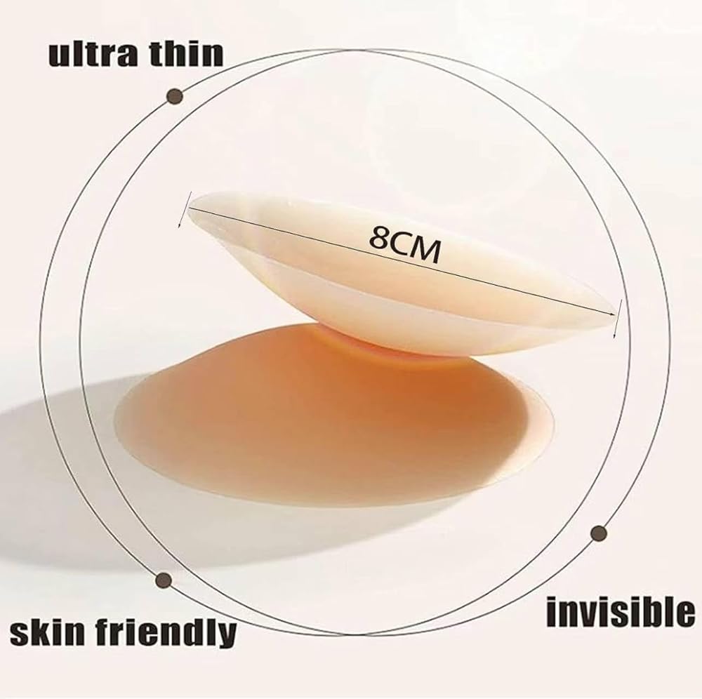 Ultra-thin Nipple Pasties: The slim border seamlessly melds with your skin, creating an incredibly smooth look, ensuring that your nipple pasties go unnoticed by anyone. Strong Adhesive: Maintain its grip until you choose to remove it. Plus, this high-quality adhesive is gentle on your sensitive skin, ensuring it will not leave any red marks behind. Medical-Grade Hypoallergenic Silicone: Feature top-tier medical-grade silicone, safeguarding your delicate and sensitive nipples for true comfort and freedom. Matte Finish: This non-reflective nipple cover ensures that it won't catch or transmit light, preventing any unwanted transparency issues under your clothing. Reusable:These adhesive nipple covers are designed with a special formulation that allows for easy cleaning and reuse, providing a cost-effective and environmentally friendly solution.