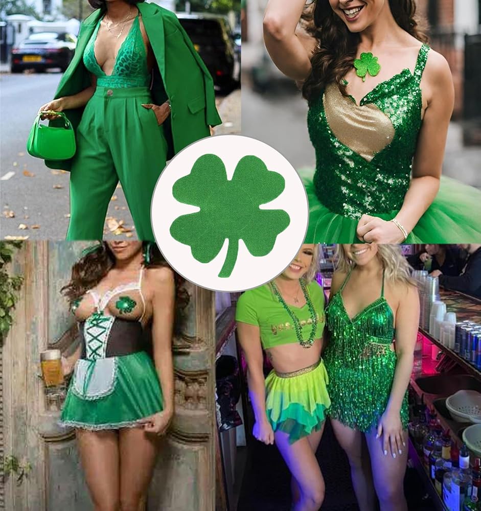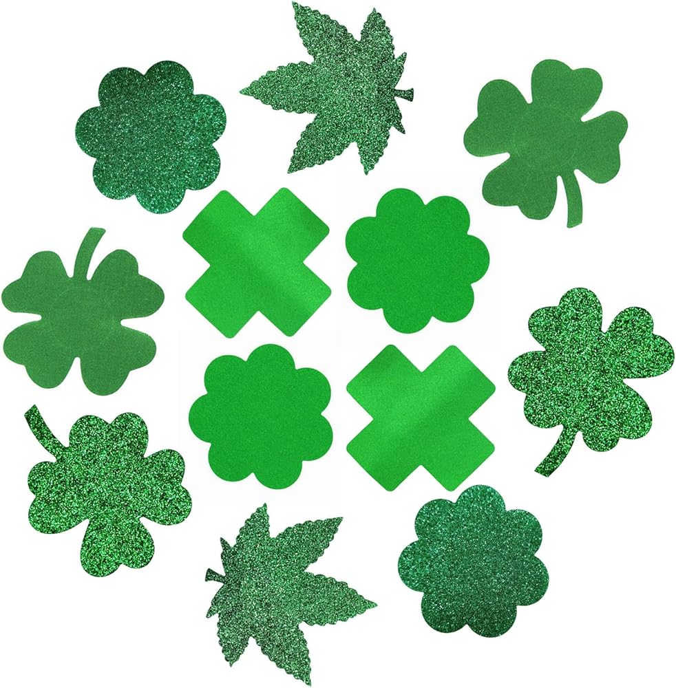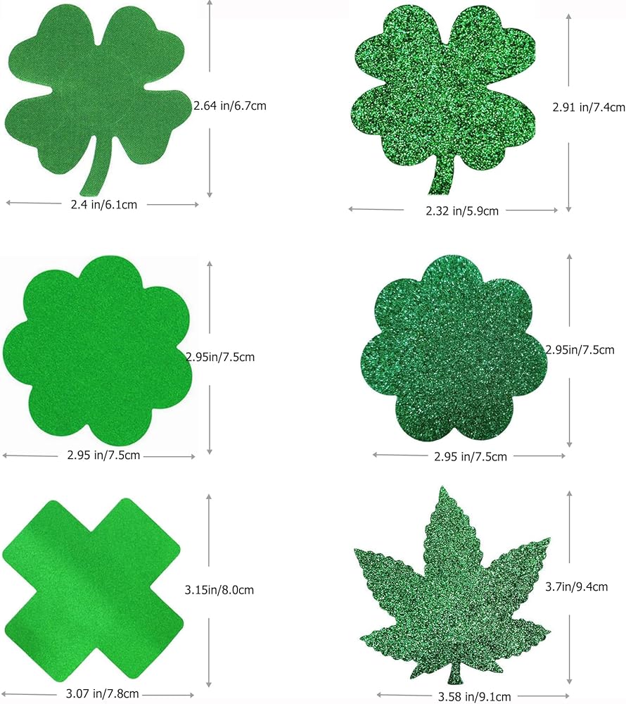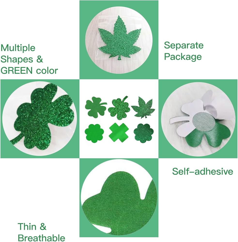 St. Patrick's Day themed cute shapes: Lunedear nipple covers includes 6 pairs of GREEN nipple covers in multiple shapes(clovers and leaves shapes); each one has individual package, ideal accessories for your St. Patrick's Day costume, enhance festival atmosphere;