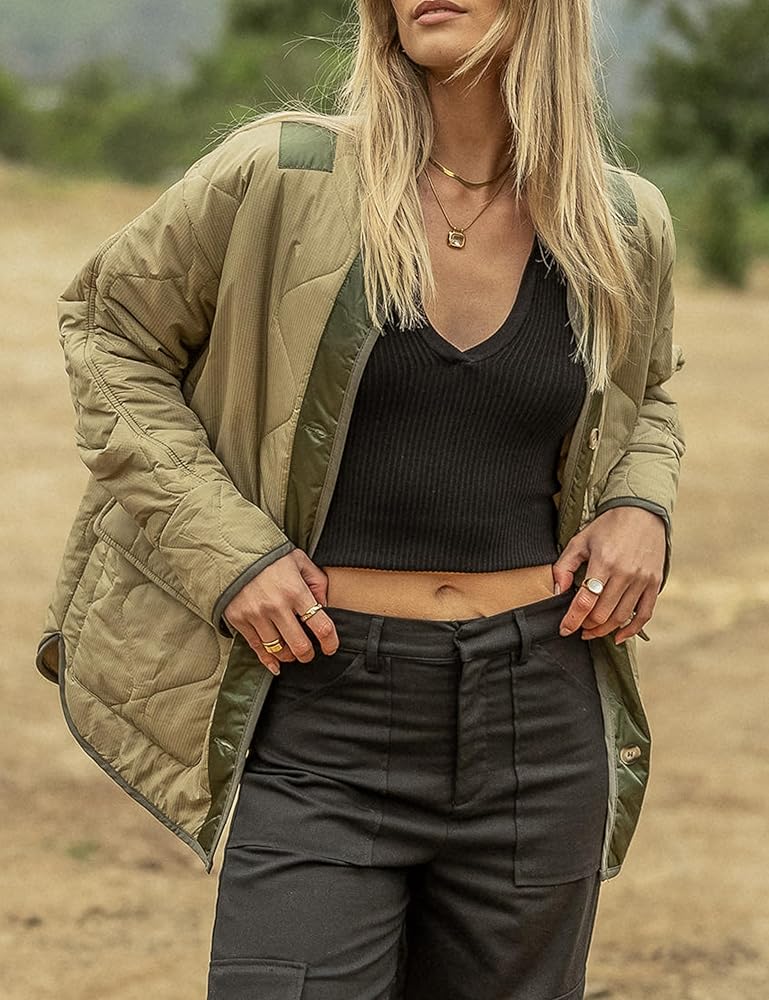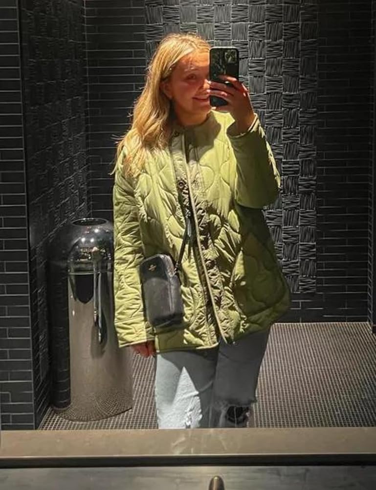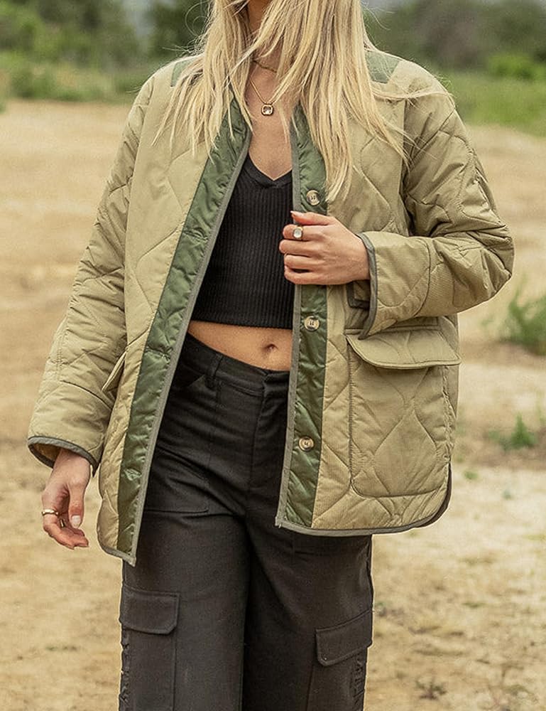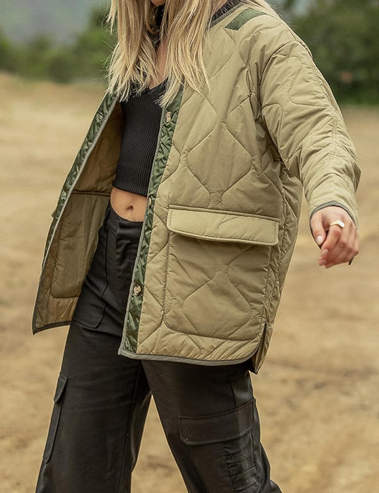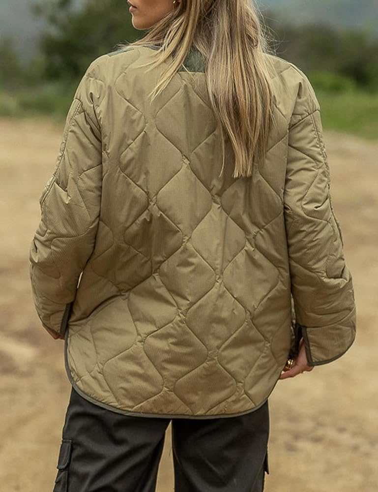 جاكيت نسائي كبير الحجم مبطن وخفيف الوزن، قماش خفيف الوزن يجعلك تشعر بالدفء والراحة في الخريف والشتاء