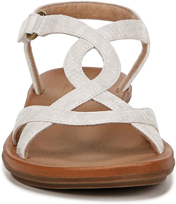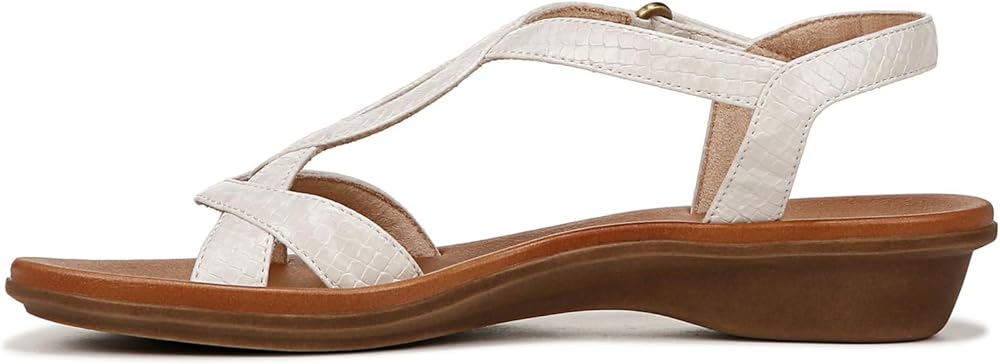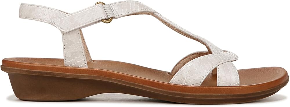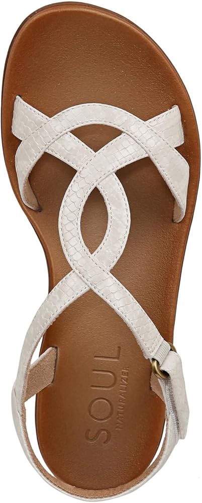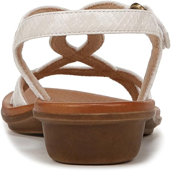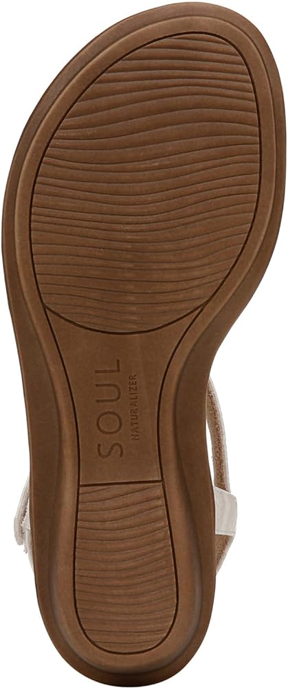 From SOUL Naturalizer // Your new favorite women's sandals, crafted to perfection. With a walkable heel and strappy design, feel equal parts cool and comfy. Shop both medium and wide width sandals for women & get ready for long-lasting comfort. Strappy sandals for women with adjustable ankle strap. Manmade or metallic manmade upper with an open round toe. Adjustable hook-and-loop closure. All-Thru Comfort: soft foam lining, arch support with memory foam, lightweight and flexible treaded outsole. 1 inch(es) heel. Consciously packaged: 100% of our shoe boxes are made of 80% recycled paper + soy-based ink. Designed using some environmentally preferred materials. WHY YOU'LL LOVE IT: Designed to the contours of a woman's foot. Available in an inclusive range of sizes and widths for a custom-designed fit and all-day wear. The Beautiful Fit. Est. 1927.