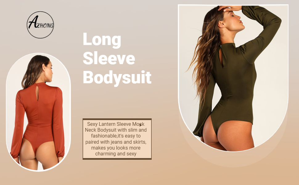 تيشيرت نسائي مثير بأكمام طويلة ورقبة سلحفاة من Azhong، تي شيرت ضيق، بدلة قطعة واحدة