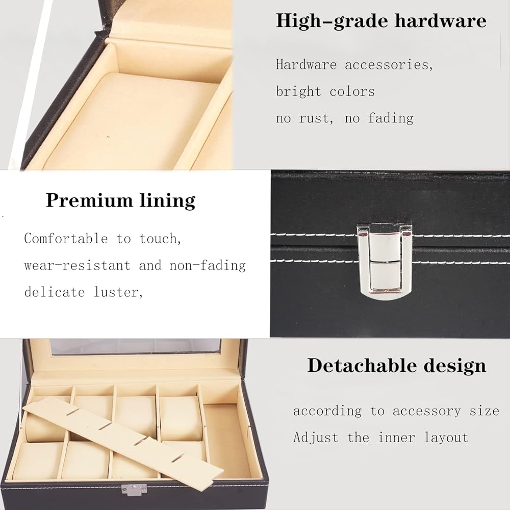 【انتبه إلى التفاصيل】حواف وزوايا صندوق الساعة مرئية بانتظام، وخطوط الخياطة الأنيقة والضيقة تجعل المنتج أكثر مثالية. تصميم قفل معدني، ألوان زاهية ومشبعة.