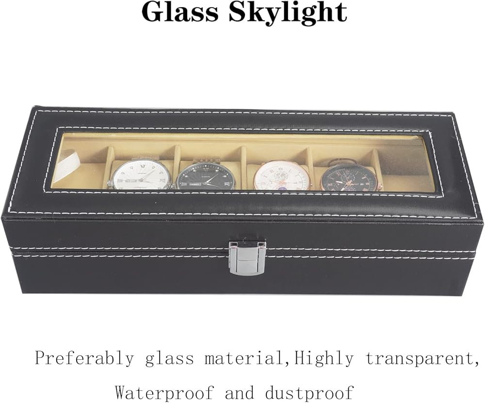 【فتحة سقف زجاجية】يحتوي صندوق تخزين الساعة على غطاء زجاجي لحماية الساعات والمجوهرات من الغبار والخدوش. وفي الوقت نفسه، تسهل عليك الشفافية العالية العثور على المجوهرات والساعات التي ترغب في ارتدائها.