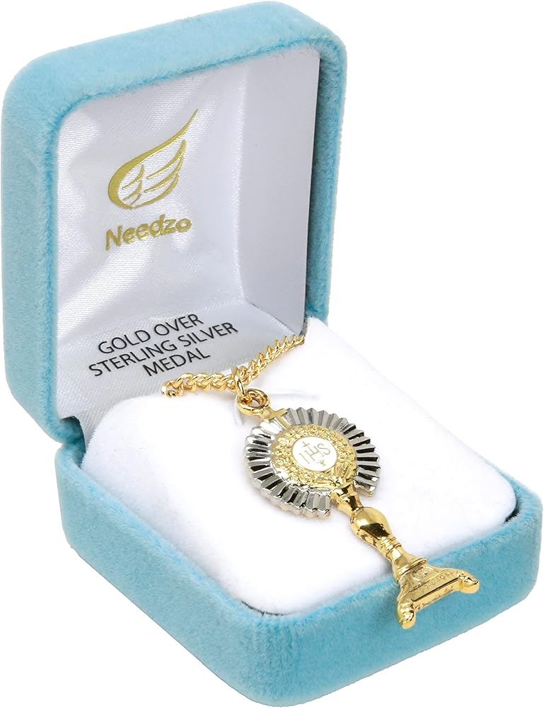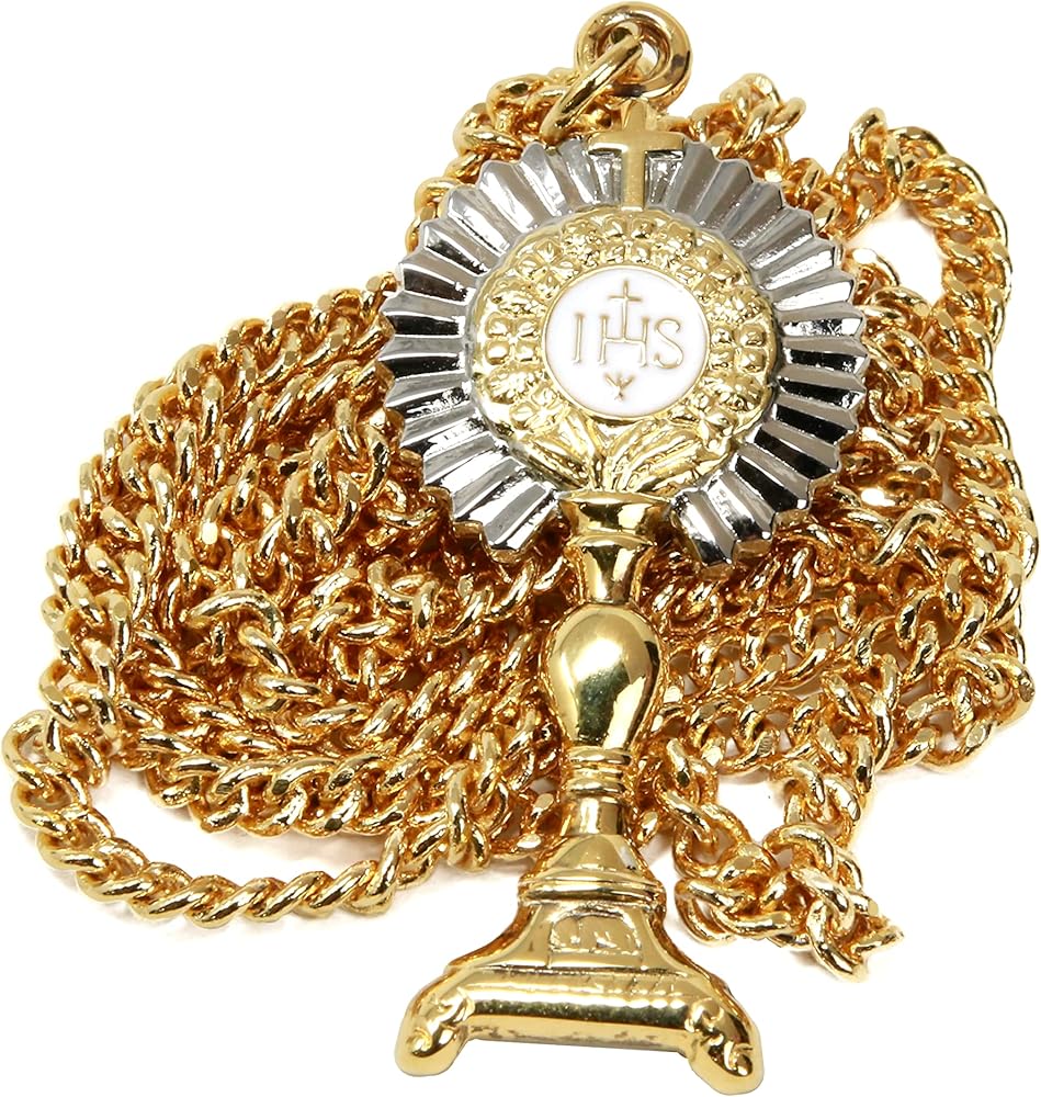 قلادة من الفضة الاسترليني عيار 14 قيراط من الفضة الاسترلينية IHS Monstrance من اتش ام اتش ريليجيوسام اف جي، 1 7/8 انش، فضة استرليني, فضة استرلينية