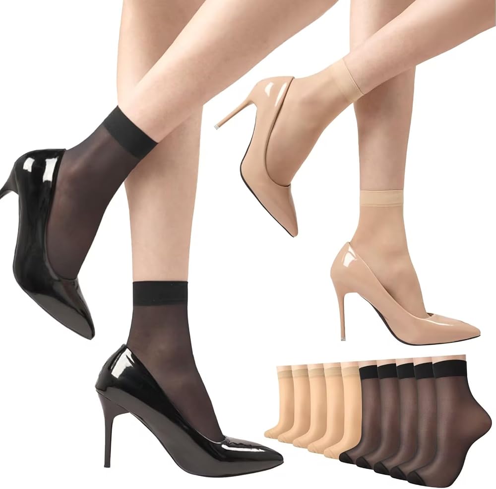 10 أزواج من الجوارب الشفافة جوارب من النايلون للنساء جوارب رقيقة للكاحل جوارب من الحرير الشفاف مع مقدمة معززة