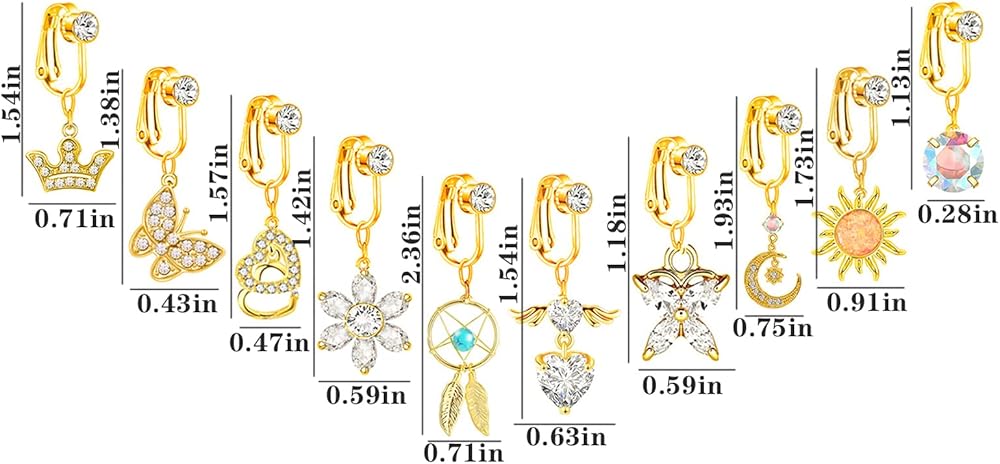 • Gold Navel Ring: You will get a package with 10 pcs fake belly button rings in different styles. These styles are sure to meet your matching, which makes you more sexy and shining.