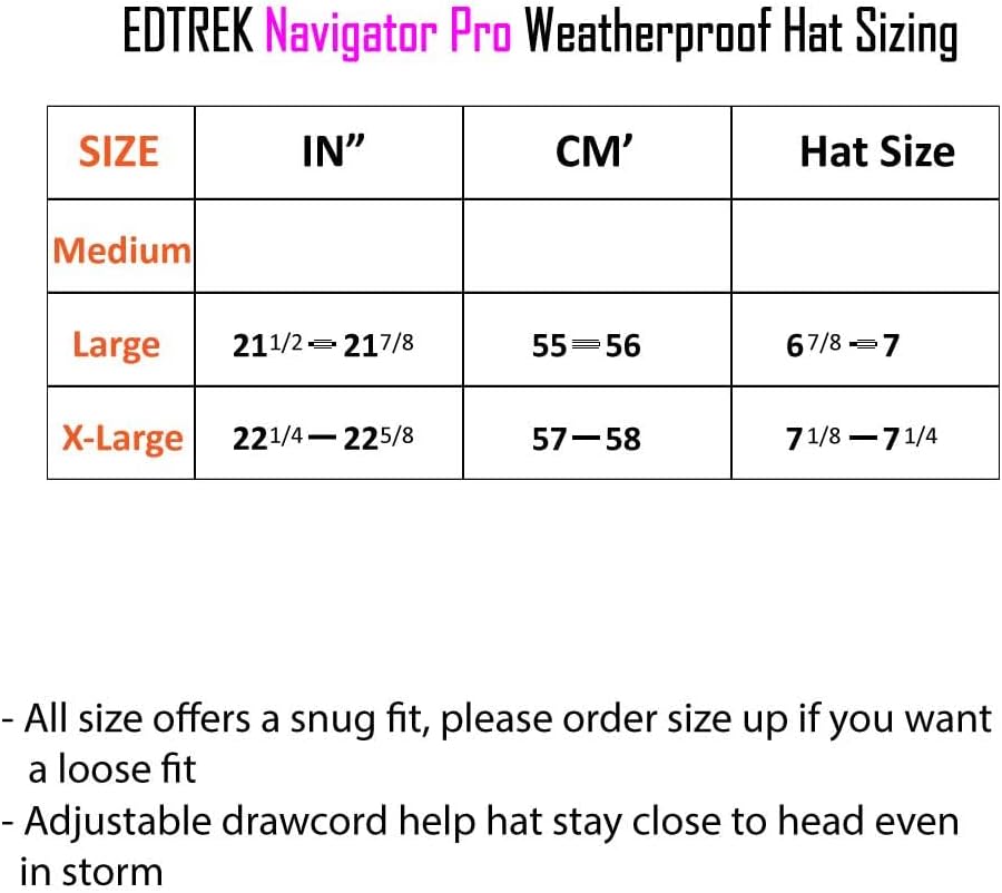 • معلومات المقاس - قبعة Navigator Pro الشتوية متوفرة بمقاس كبير وكبير جدًا. مقاس كبير يناسب معظم مقاسات رأس النساء. يرجى الرجوع إلى مواصفات المقاس لمزيد من التفاصيل. جميع المقاسات توفر ملاءمة مريحة، يرجى طلب مقاس أكبر إذا كنت تريد مقاسًا فضفاضًا. سلك قابل للتعديل من الخلف، إذا كنت تريد مقاسًا مريحًا أو كنت بحاجة إلى أن تظل القبعة قريبة من الرأس أثناء العاصفة، فقط اسحب السلك