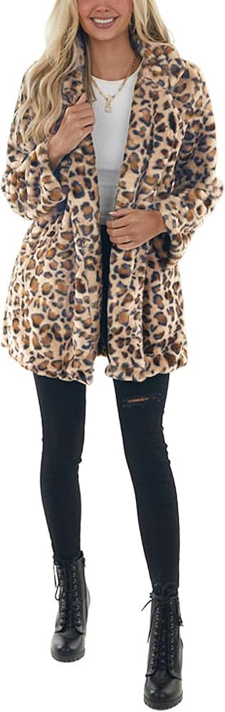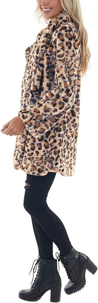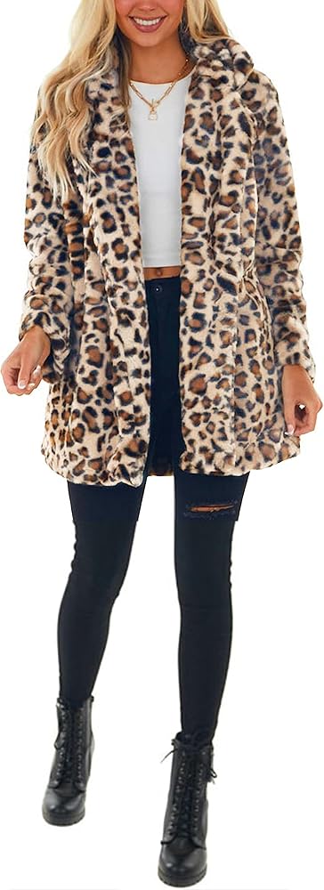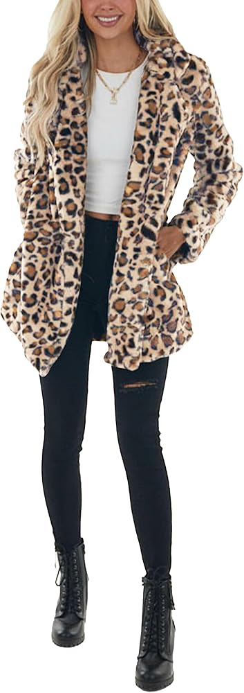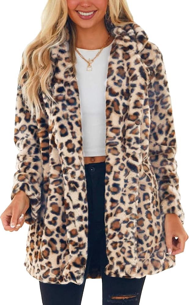 معاطف SeekMe النسائية من الفرو الصناعي سترات الفهد فضفاضة دافئة للخريف والشتاء سترة منفوشة ملابس خارجية (1807-WhiteOrangeX1-M-FY)