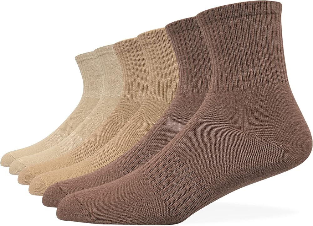 جوارب رجالية متوسطة الطاقم للتحكم في الرطوبة، فستان رياضي كلاسيكي من القطن، حزمة متعددة بني، بيج، أسمر، كاكي، متنوعة، 6 قطع