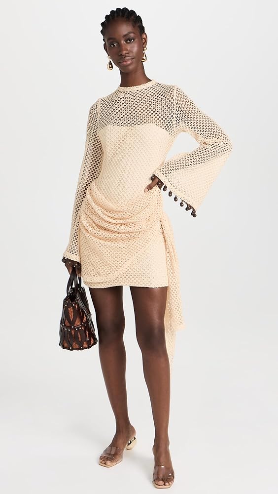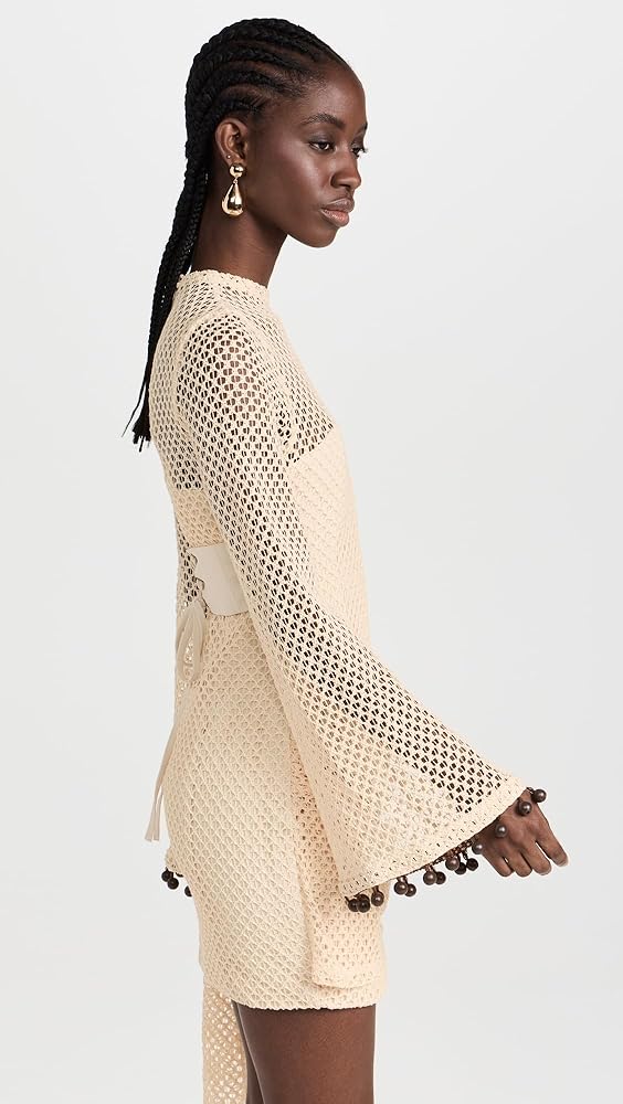 يعمل حسب الحجم. قد ترغب تلك الموجودة بين الأحجام في زيادة حجمها؛ الفستان لا يوفر أي تمدد. ، مصممة بصورة ظلية مناسبة للشكل وطول صغير. قد يسحب عند خط العنق الأمامي. أكمام الجرس طويلة قليلاً. متماسكة الكروشيه حساسة. من فضلك، تعامل معها بحذر ولطف.