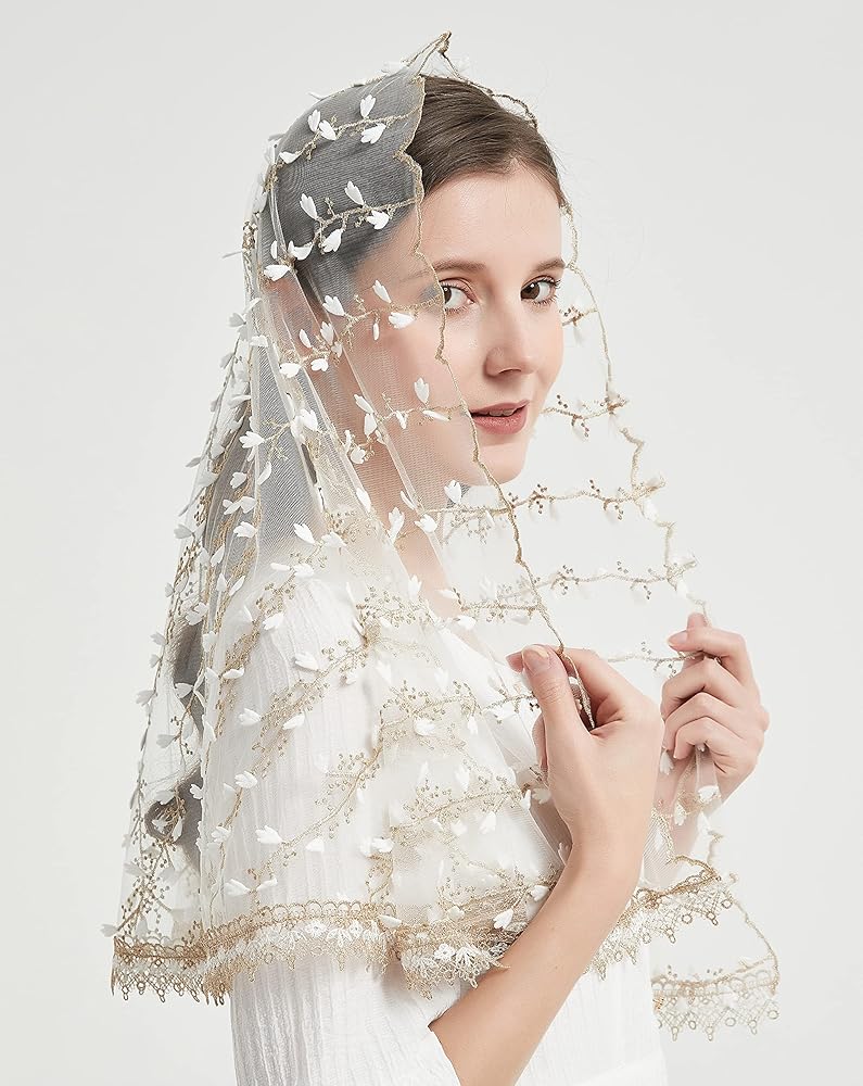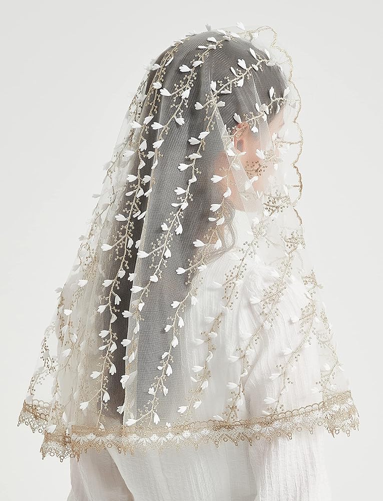 YuRongsxt Catholic Veils for Women Mass 3D Leaf-Shaped Mantilla veils Infinity Veil M1