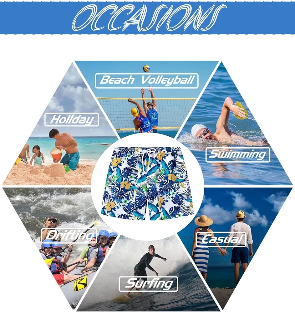【تصميم متعدد الاستخدامات】مثالي لمجموعة متنوعة من الأنشطة، مثل السباحة وركوب الأمواج وكرة الطائرة الشاطئية والملابس الكاجوال والمنزل وما إلى ذلك، تعتبر سراويل السباحة سريعة الجفاف هذه الخيار الأمثل لقضاء عطلة الجزيرة/الشاطئ/شهر العسل القادمة.