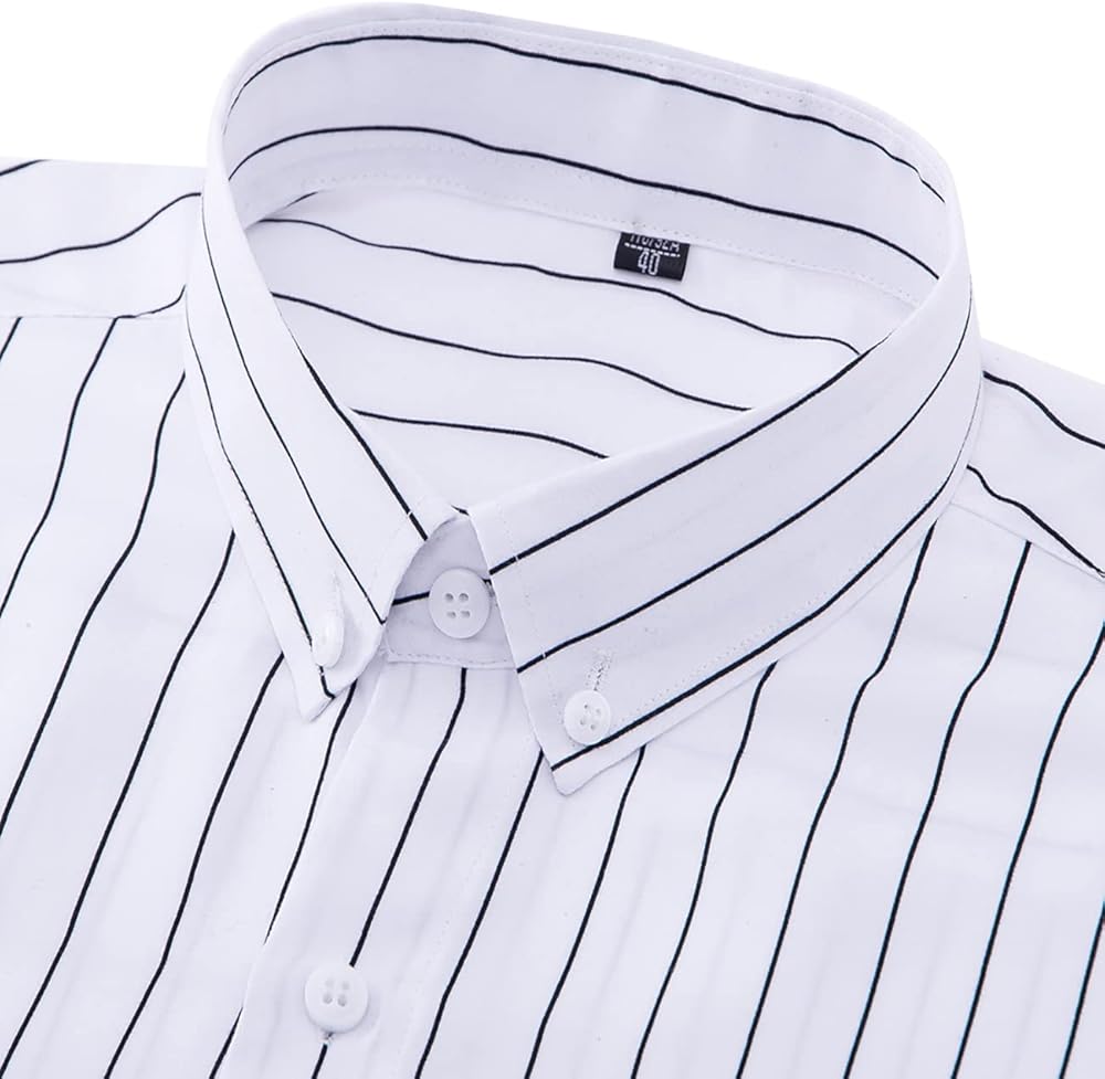 القماش: بوليستر وقطن، قمصان رجالية عالية الجودة بأزرار سفلية ناعمة الملمس وخفيفة الوزن ومريحة ومناسبة للربيع والصيف والخريف. لن تنتهي موضتها أبدًا وهي ضرورية لخزائن ملابس الرجال