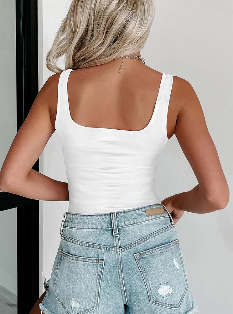 - المزايا - رقبة مربعة، قميص بدون أكمام بأشرطة بدون أكمام، خط عنق مطوي على شكل قلب، قمصان لطيفة للنساء