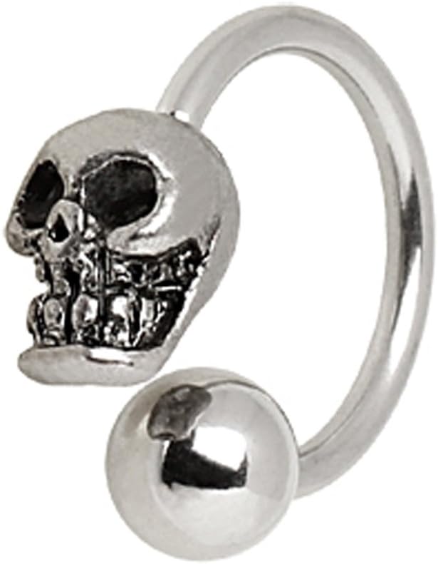 حدوة حصان من الستيل الجراحي 316L مع جمجمة. حدوة حصان من الستيل الجراحي بدرجة 316L مع جمجمة وكرة. رائعة للثقب متعددة الأغراض خاصة على الشفاه. فولاذ جراحي 316L بلمسة نهائية عاكسة مع خيط دقيق.