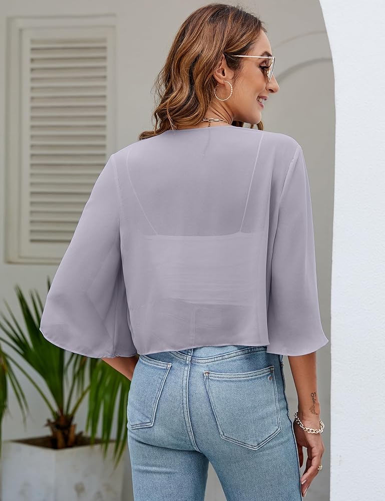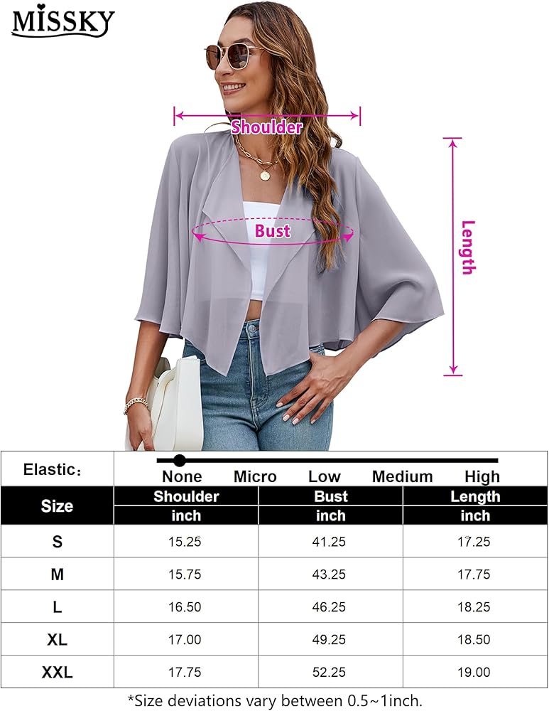 • المزايا: رقبة منسدلة، أكمام جناح الخفاش، سترة بوليرو نسائية مفتوحة من الأمام، طباعة زهور ولون ثابت. قمم المحاصيل شبه شفافة تناسب فضفاضة.