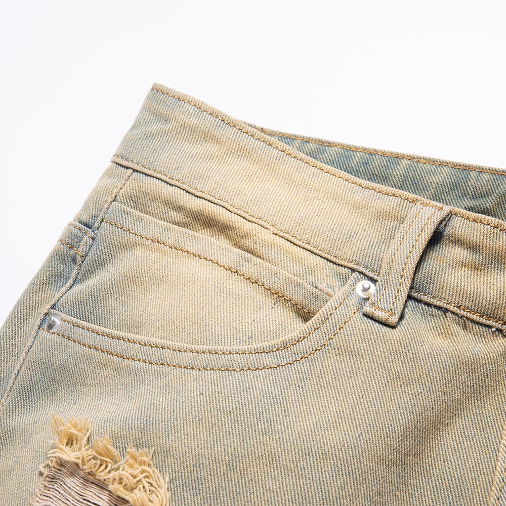 - 2. المقاس الأمريكي. جينز دينم عصري بثقوب ممزقة، سحاب ديكو