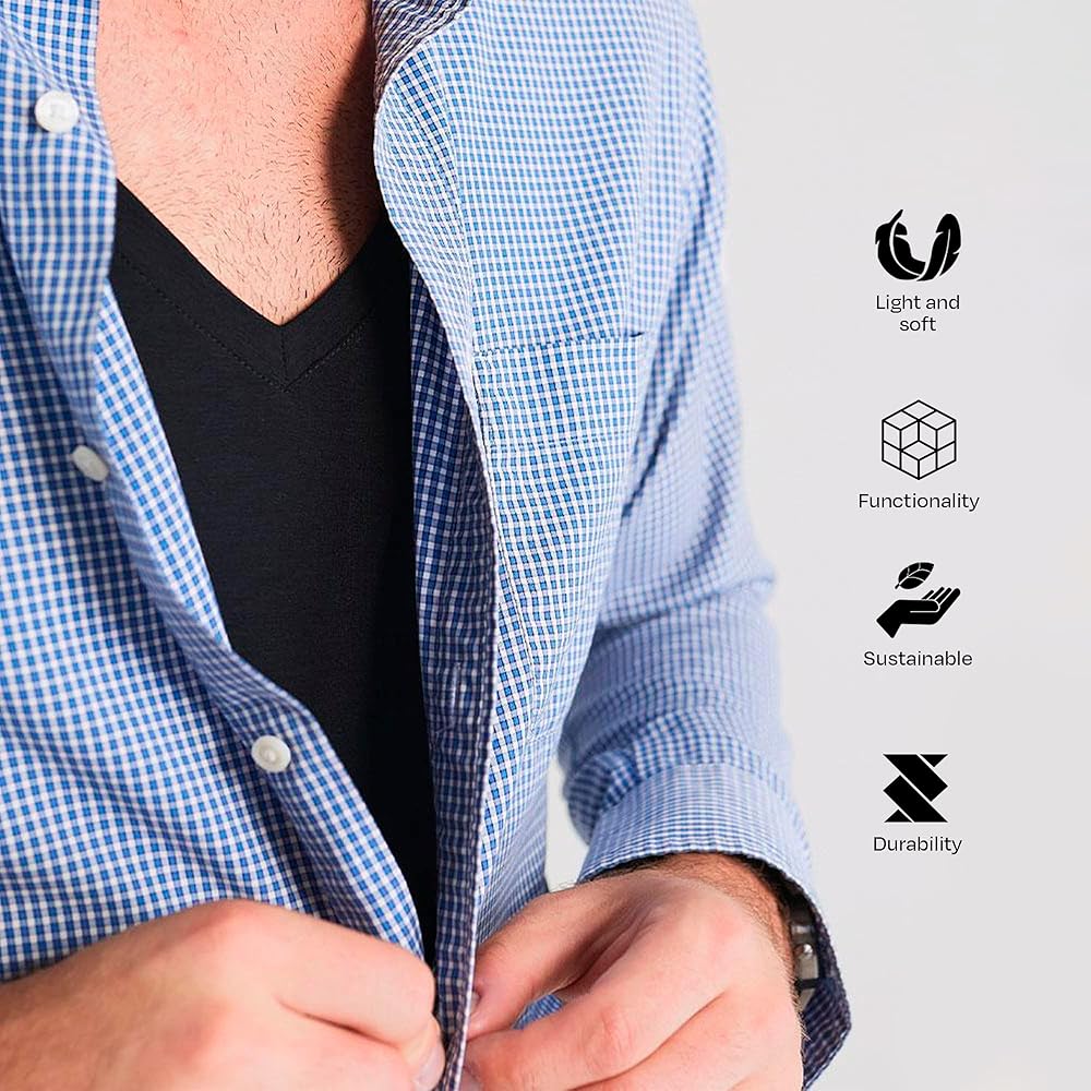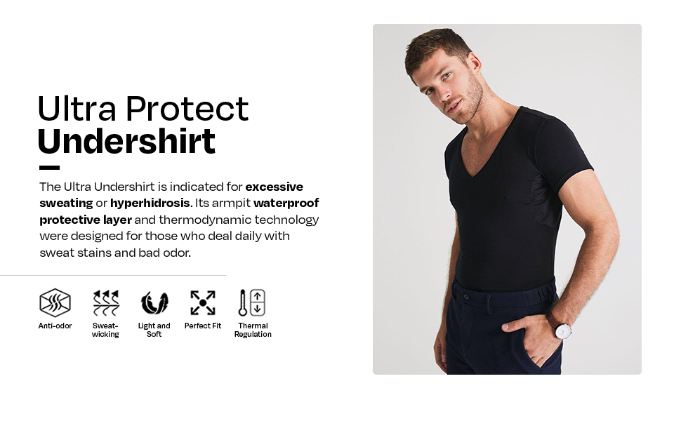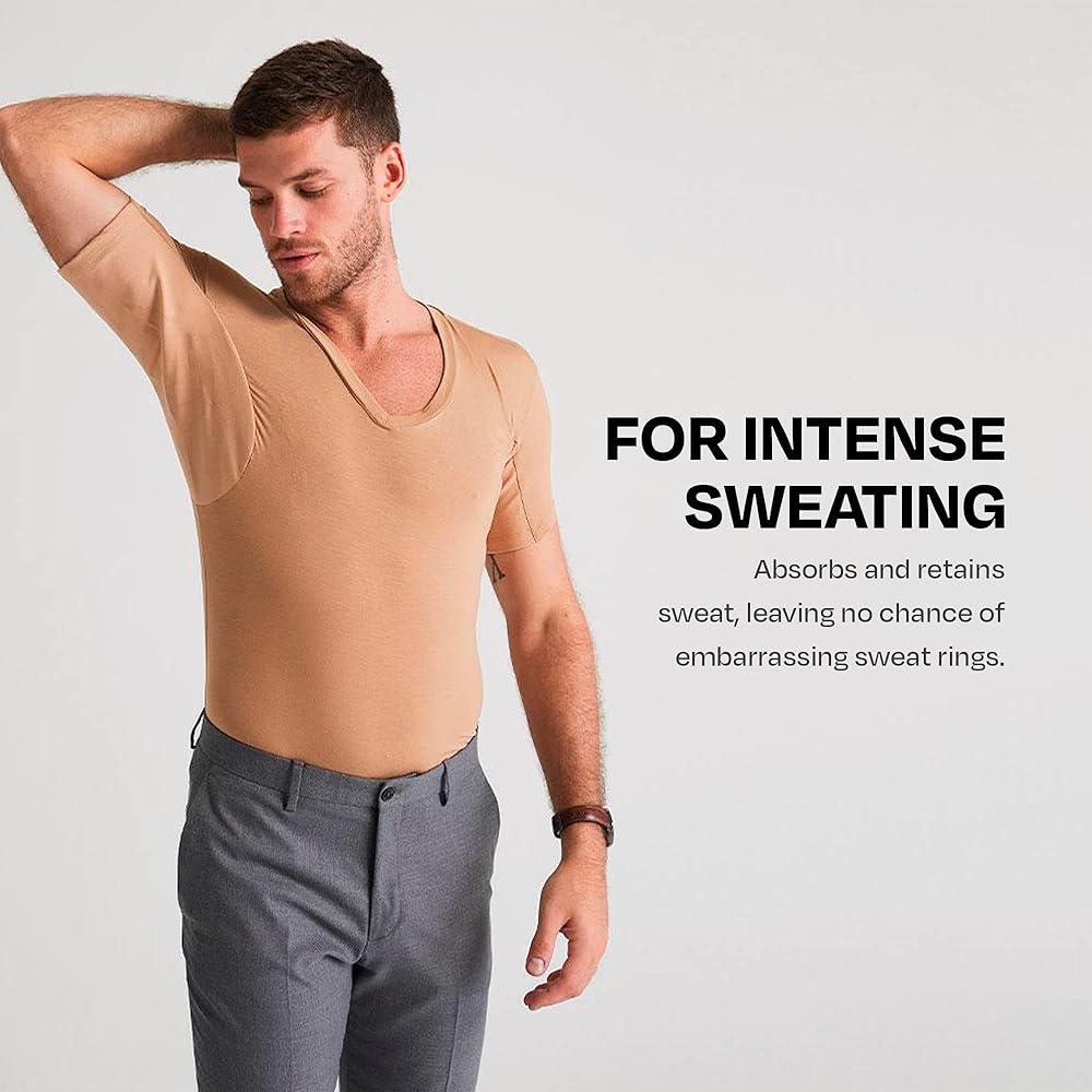 【امتصاص أكثر مرتين】تم تطوير القميص الداخلي فائق الحماية للأشخاص الذين يتعرقون بشدة. يتمتع بقدرة امتصاص مضاعفة في جميع أنحاء القميص ويعزز الحماية ضد الماء في الإبطين. بالإضافة إلى ذلك، فإن الموديل مصنوع من نسيج مودال مستدام يمتص أكثر من القطن التقليدي.