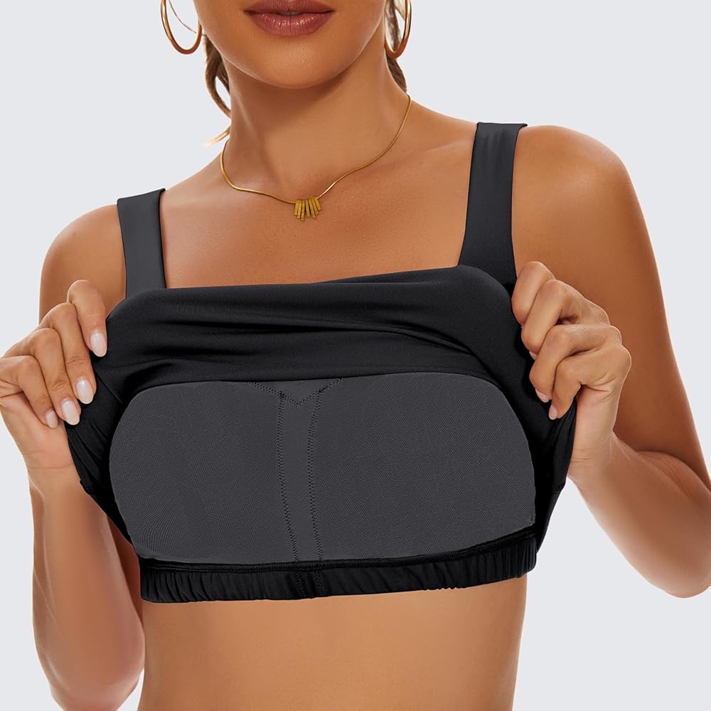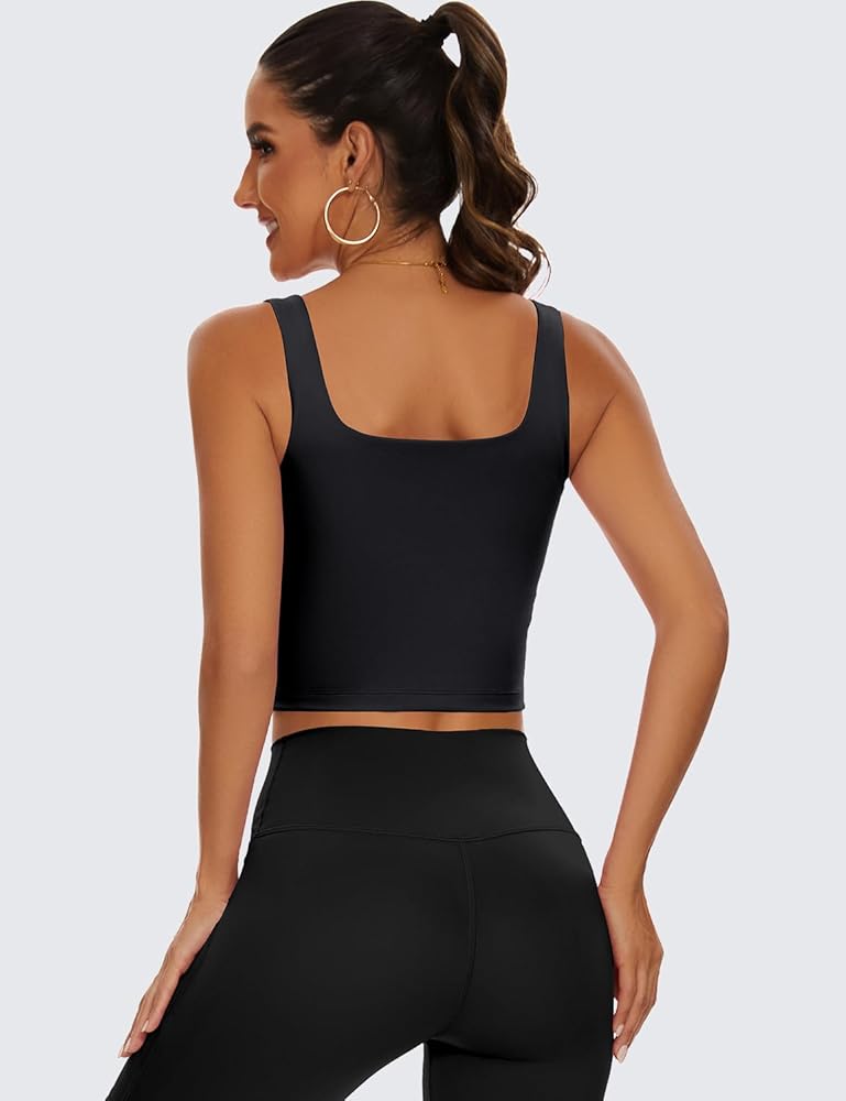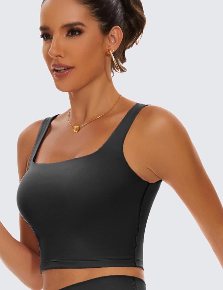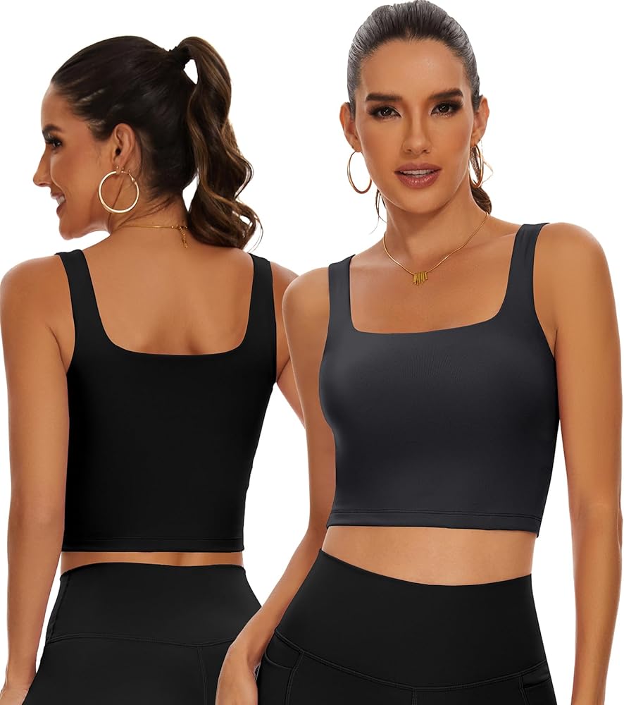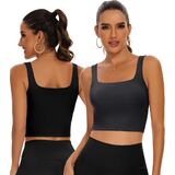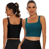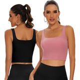 TAIPOVE حمالة صدر رياضية مبطنة طويلة للتمرين، بلوزة قصيرة برقبة مربعة، صدرية رياضية لليوجا والجيم، 2 عبوة