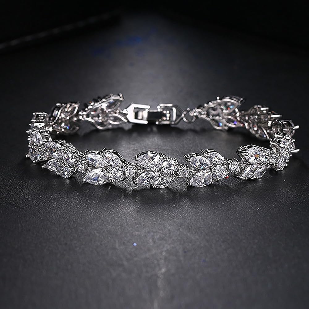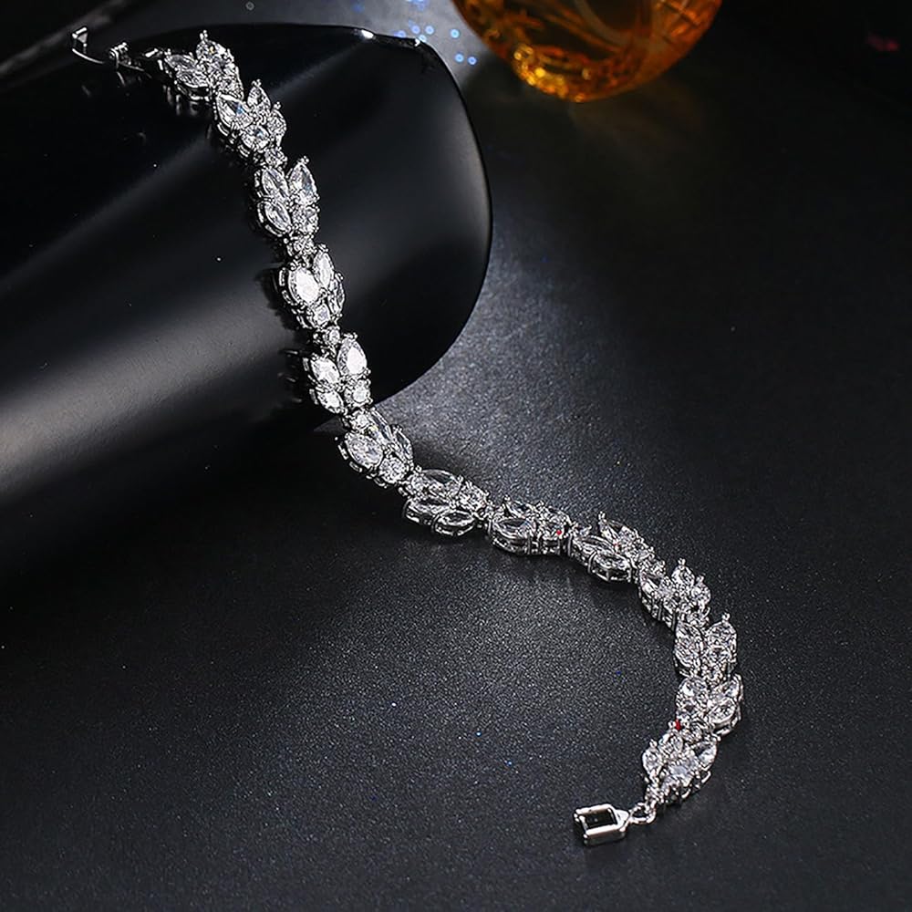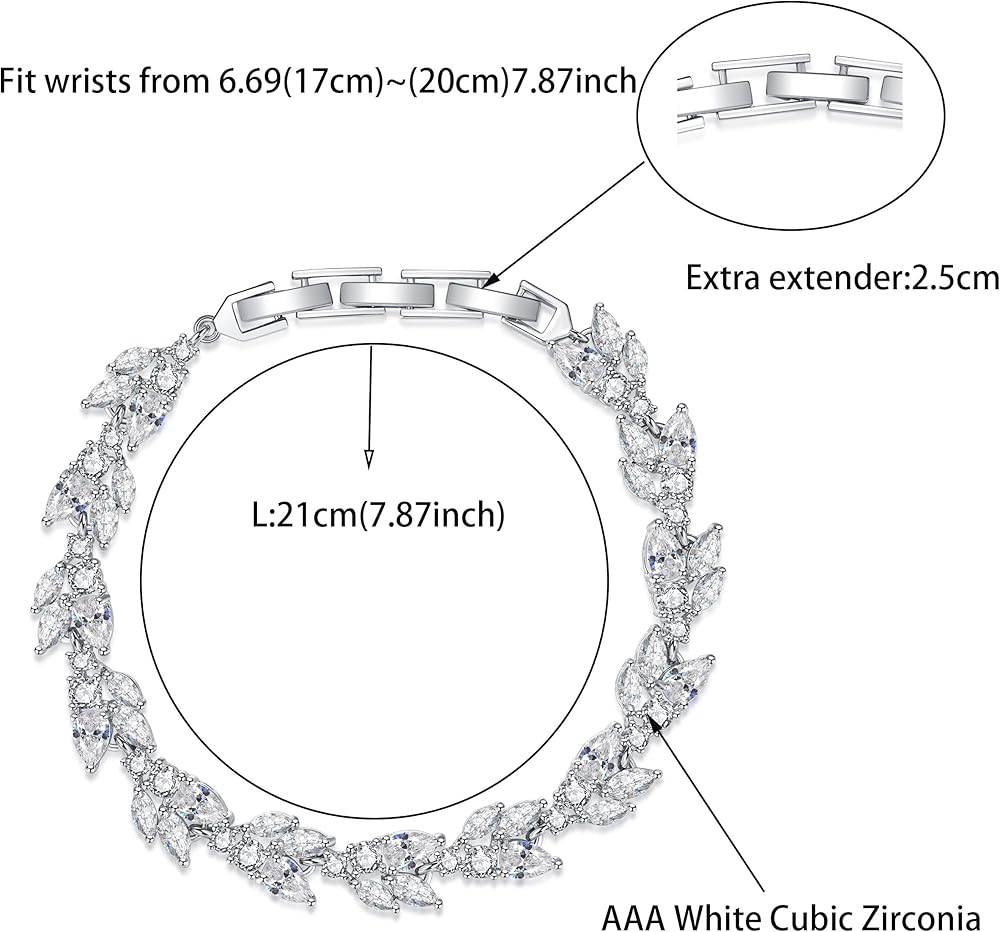 ★ خامة عالية الجودة ★: سوار التنس للسيدات هذا مصنوع من زركونيا مكعب AAA باللون الأبيض. مصقول للغاية، مطلي بالذهب الأبيض عيار 18 قيراط. خالية من النيكل، ولا تسبب الحساسية، ولامعة إلى الأبد. مثالية للاحتفاظ بها كحفلة أو مجوهرات لحفلات الزفاف. مجموعة المجوهرات التنكرية لدينا مناسبة لجميع أنواع البشرة الحساسة تقريبًا. خالية من النيكل ولا تسبب الحساسية ولامعة إلى الأبد.