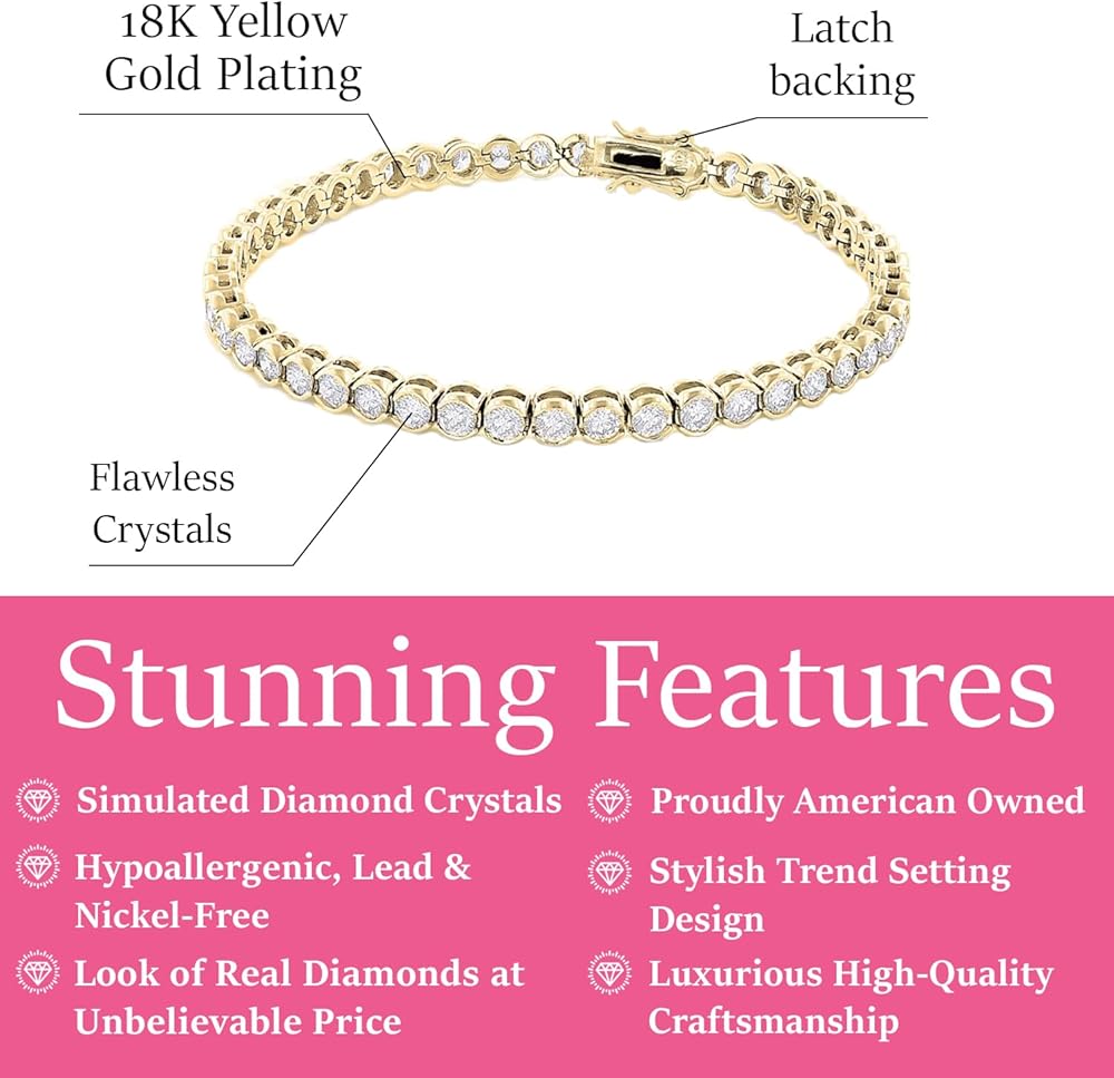 أساور التنس من كيت آند كلوي جويل من الذهب عيار 18 قيراط للنساء، سوار من الألماس المقلد مقاس 7.5 بوصة مع كريستالات مستديرة، أفضل مجوهرات للمناسبات الخاصة لحفلات الزفاف، والهدايا