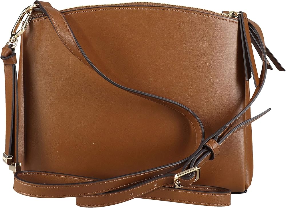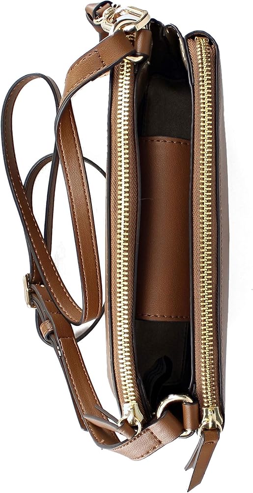 Levona crossbody features a comfortable and adjustable crossbody strap on the exterior with 2 zipper compartments and a center open compartment on the interior.