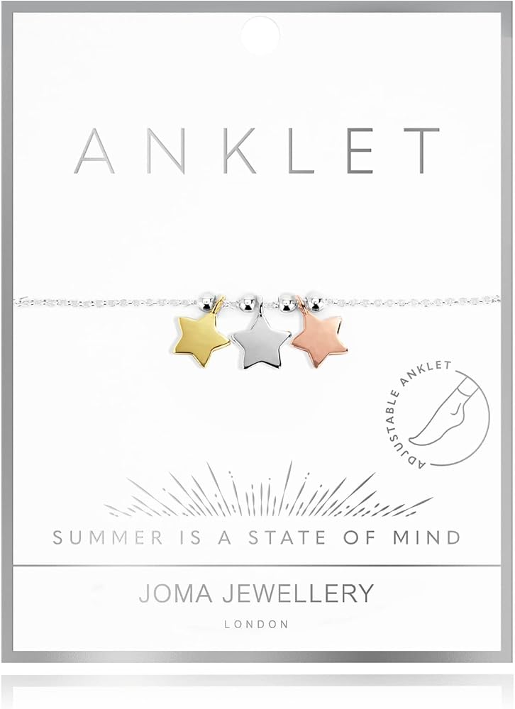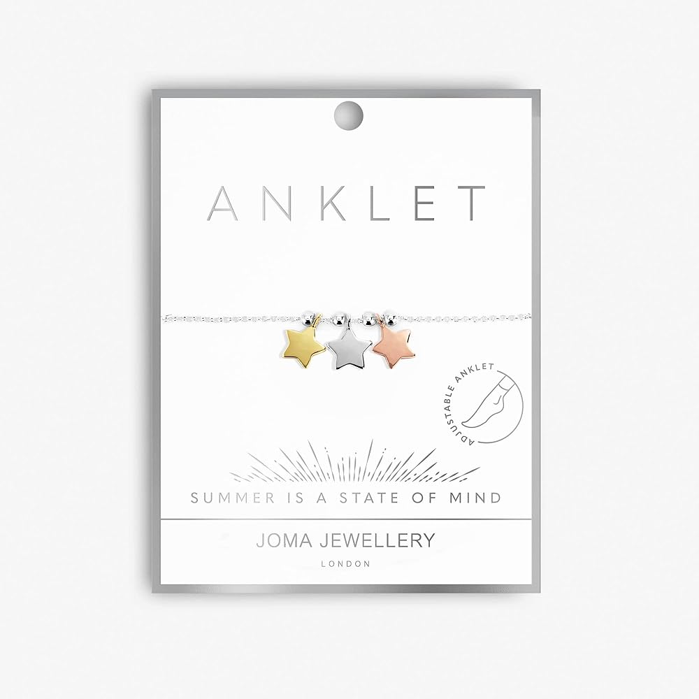 سوار خلخال نسائي من KATIE LOXTON مطلي بالذهب الوردي والذهبي والفضة بطول 25.4 سم قابل للتعديل على شكل نجوم